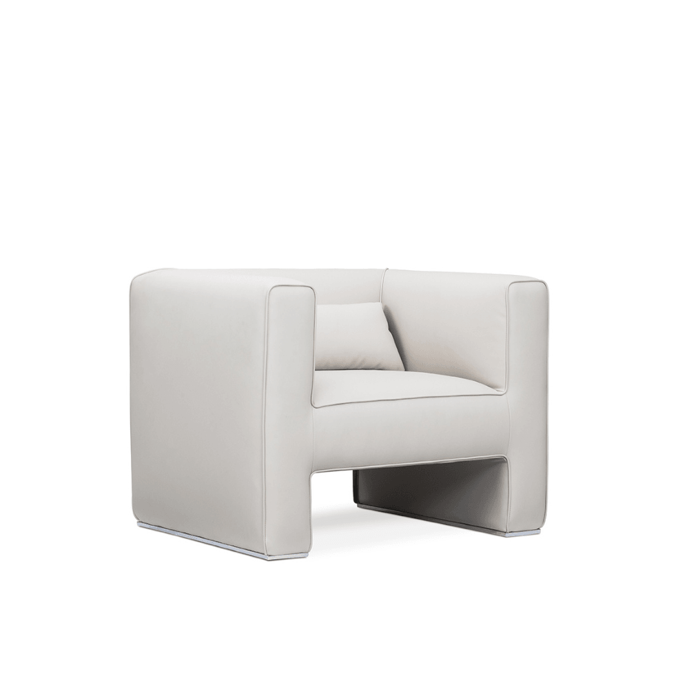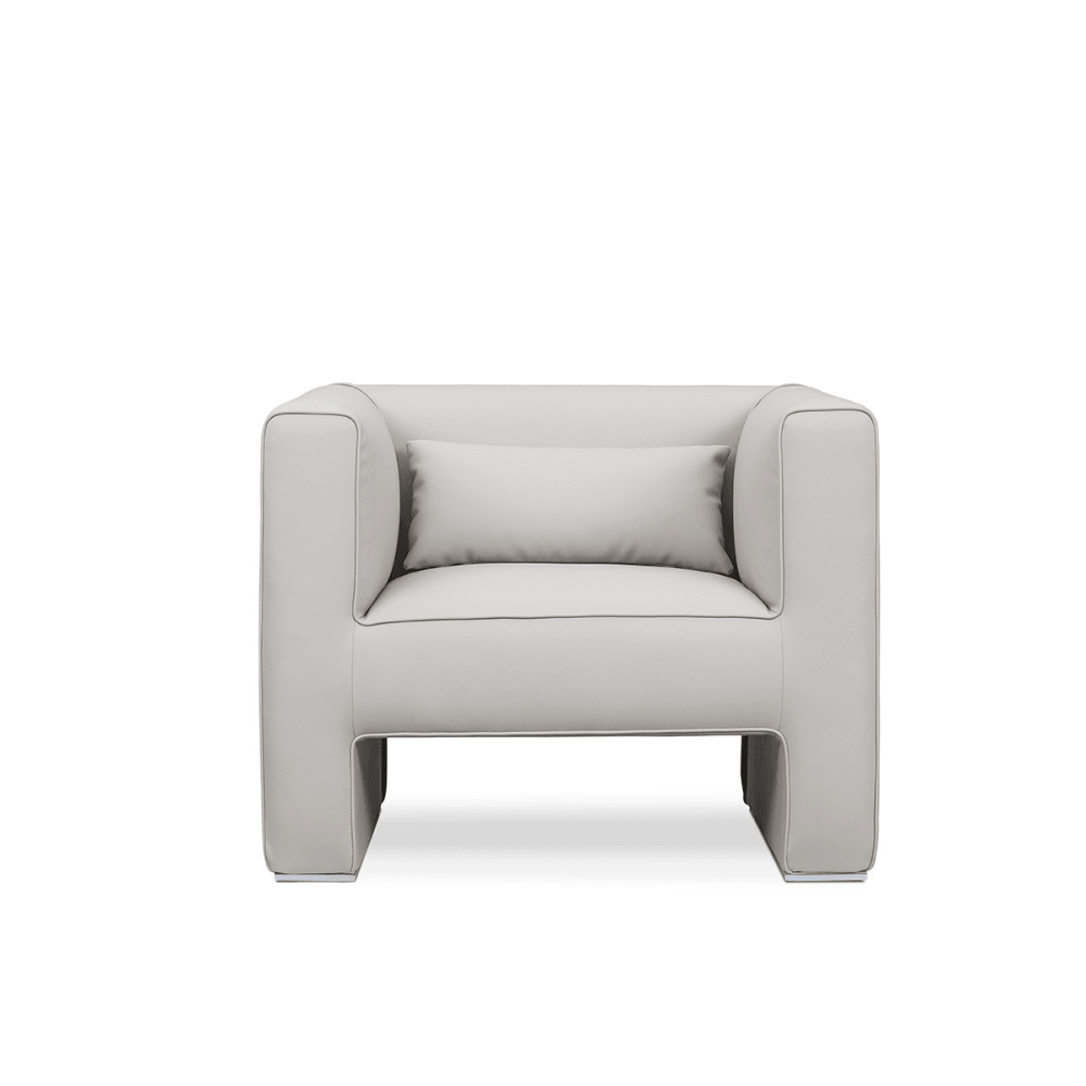 Fabricado en cuero PU de alta calidad o en tela importada de Brasil, este sofá cuenta con una estructura robusta. Su diseño en forma de H oculta una base de acero, garantizando durabilidad y estabilidad. El relleno de espuma de alta densidad de 40 kg/m³ asegura un confort óptimo.