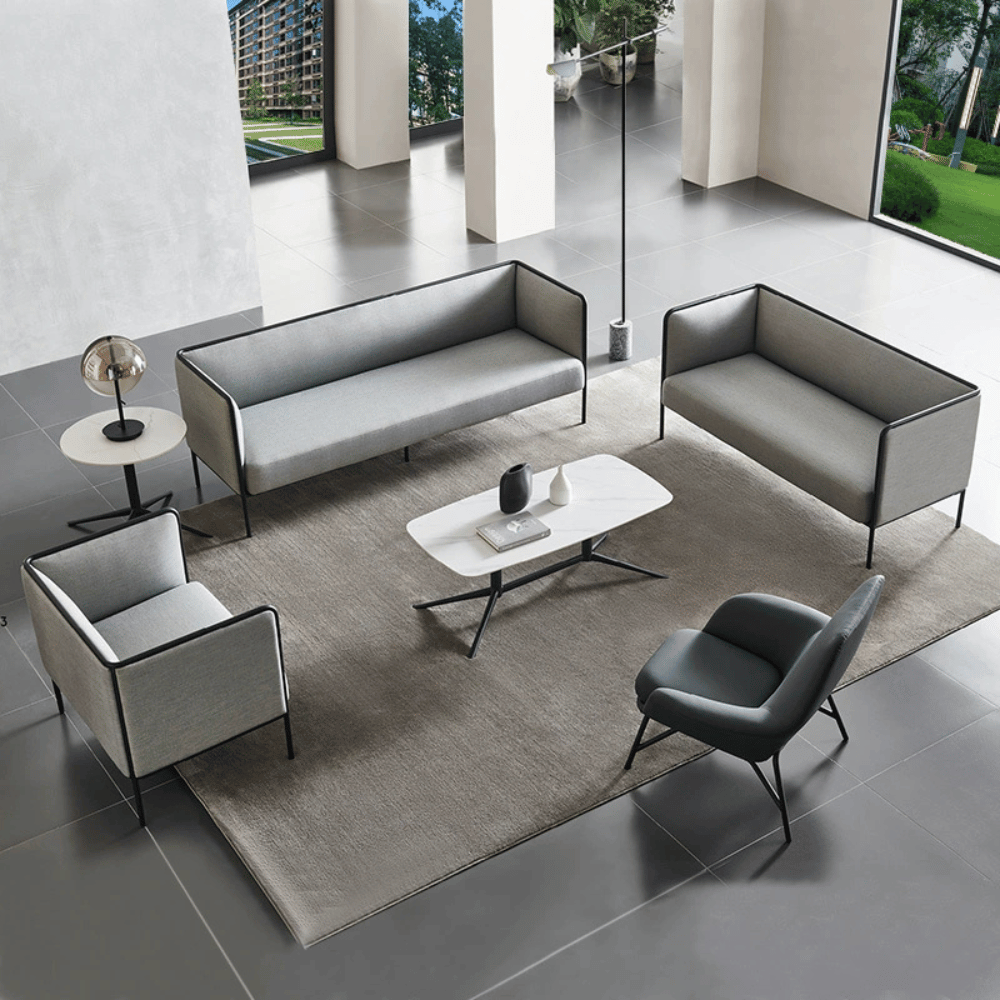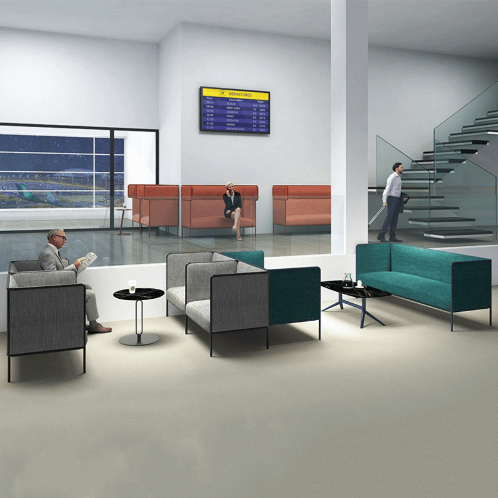 El sofá Max presenta un acabado cuidado con una tela suave y resistente, ofreciendo un excelente tacto. Su diseño asegura durabilidad manteniendo su estética y funcionalidad. Este modelo está diseñado para resistir un uso intensivo en entornos profesionales.