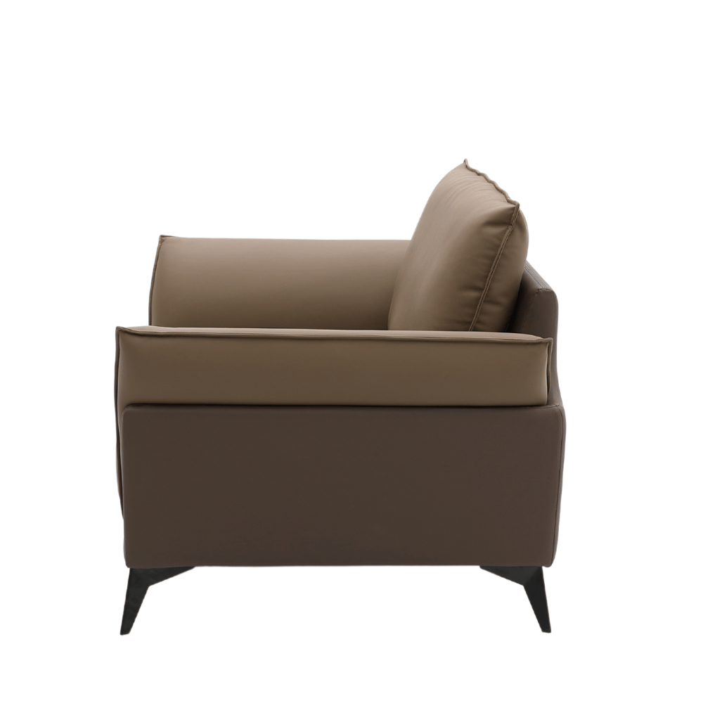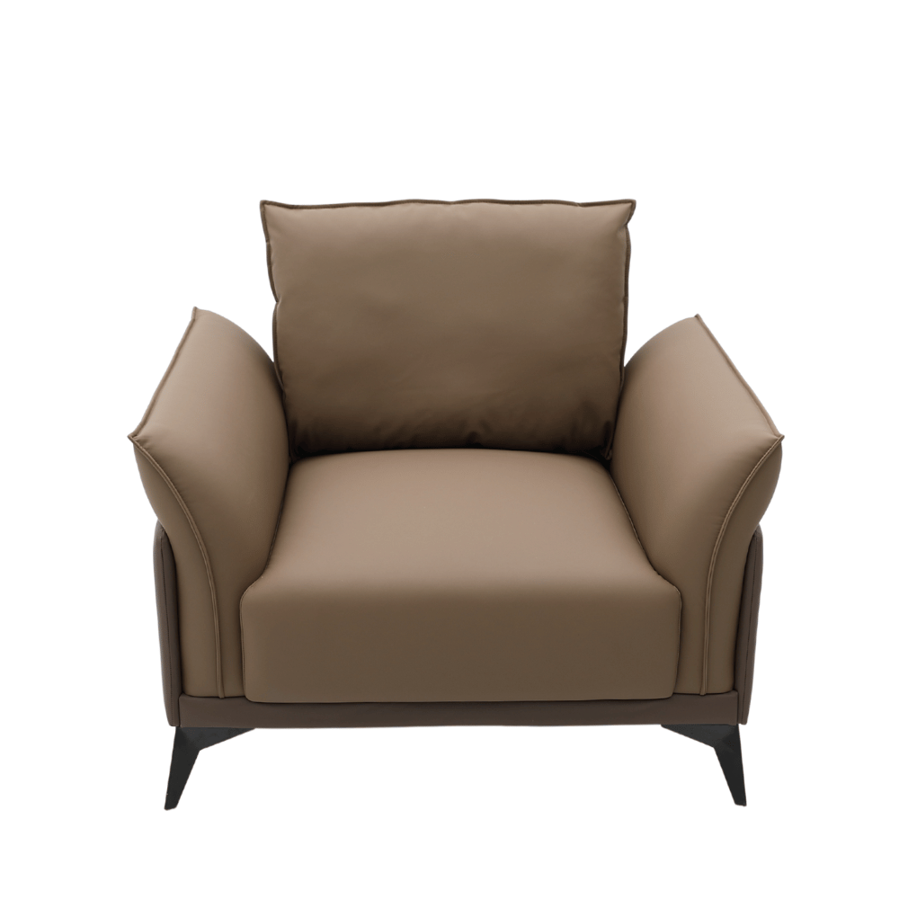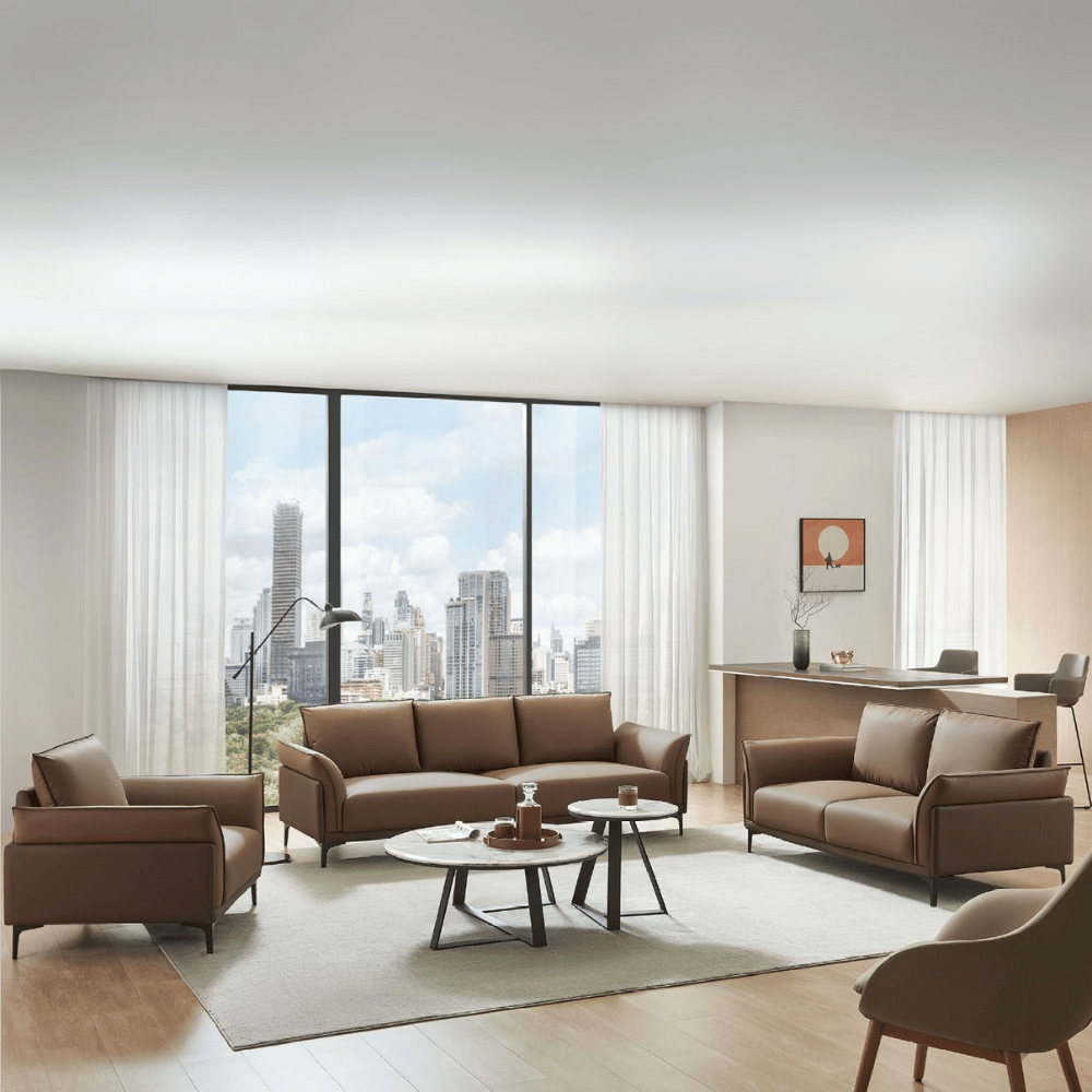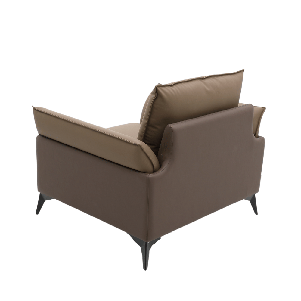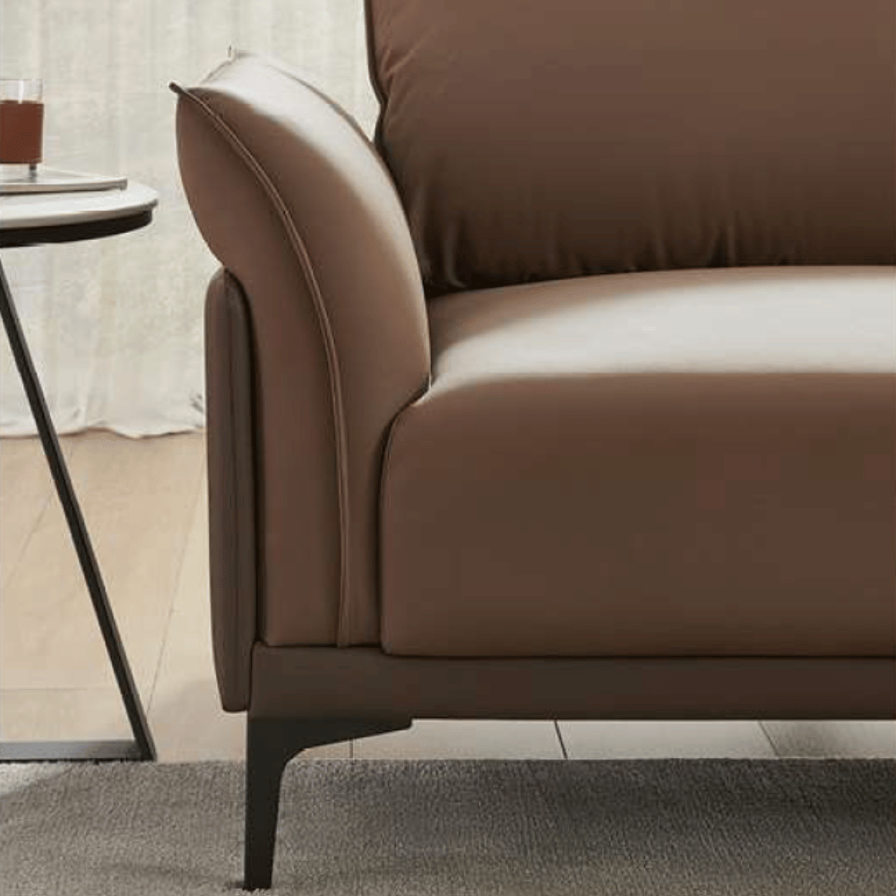 El sofá cuenta con una estructura de madera de alerce importada, garantizando estabilidad y durabilidad. Su relleno de espuma de poliuretano de alta densidad asegura una comodidad óptima sin deformaciones, incluso después de un uso prolongado. El acabado en cuero de calidad superior añade un toque de lujo y es fácil de mantener.