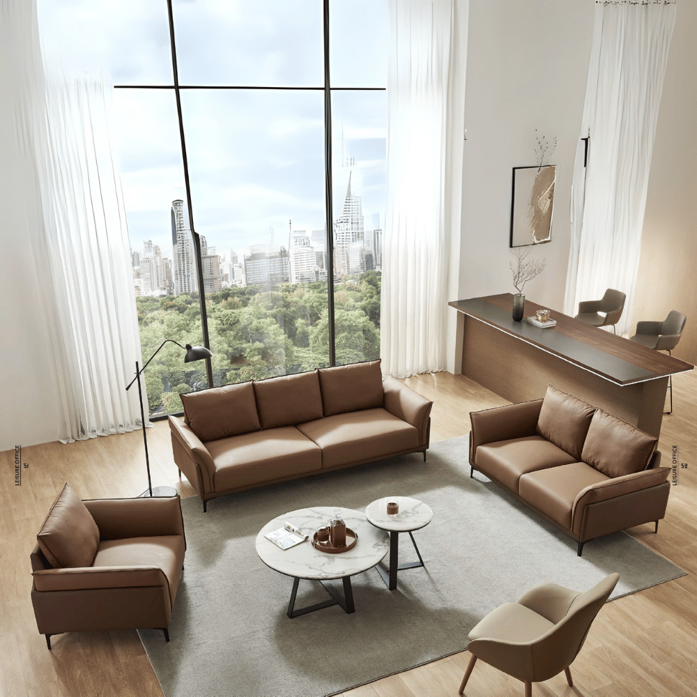 Este sofá lounge combina comodidad y elegancia, ideal para espacios profesionales como hoteles, salas de espera y oficinas.