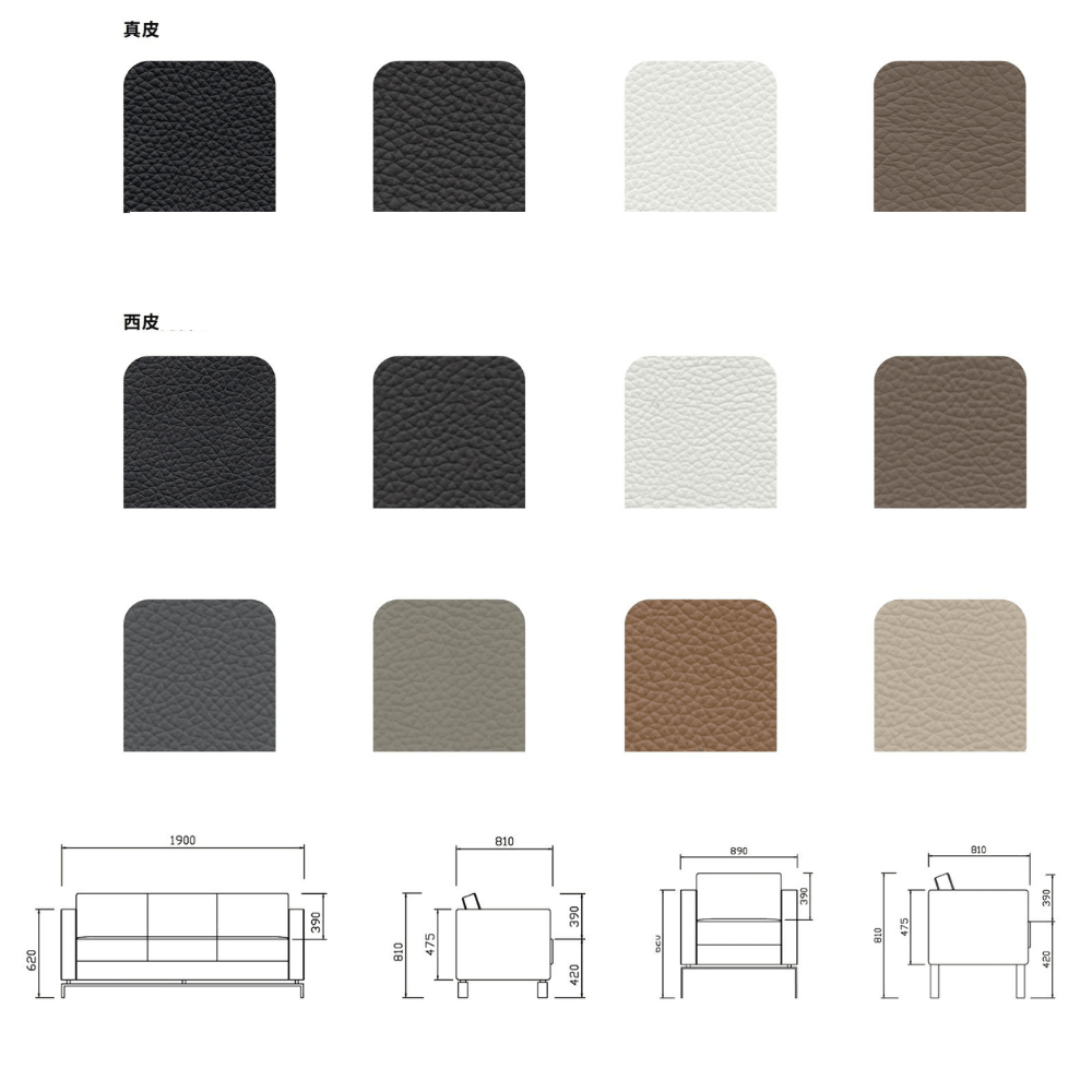El sofá está diseñado con un marco de madera maciza, pulido y secado, garantizando robustez y estabilidad. Está acolchado con espuma de alta densidad para una comodidad óptima. El revestimiento de cuero genuino aporta un toque de lujo y durabilidad.