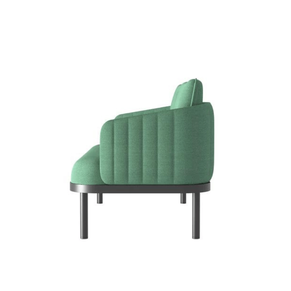 El sofá cuenta con un acabado cuidadoso, con un tacto agradable y una estética moderna. Su diseño está pensado para resistir la prueba del tiempo, manteniendo su elegancia en entornos de alto tráfico.