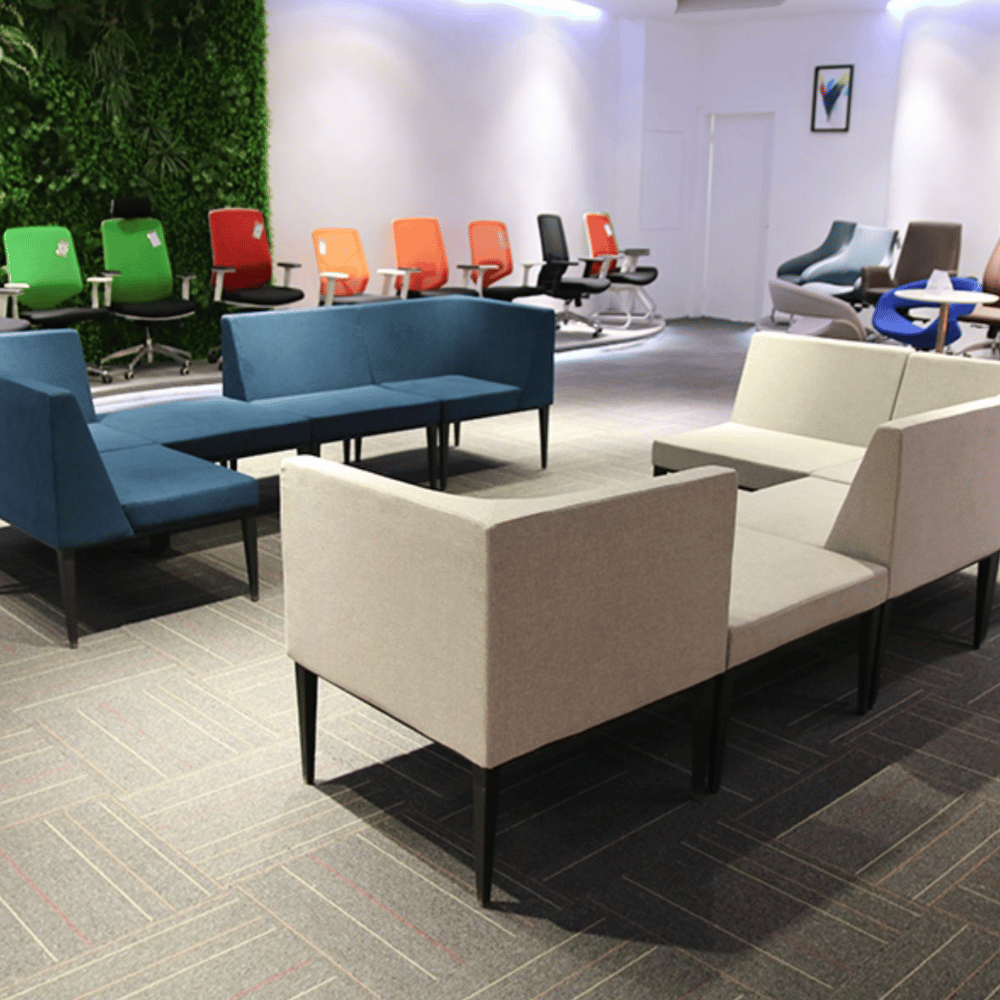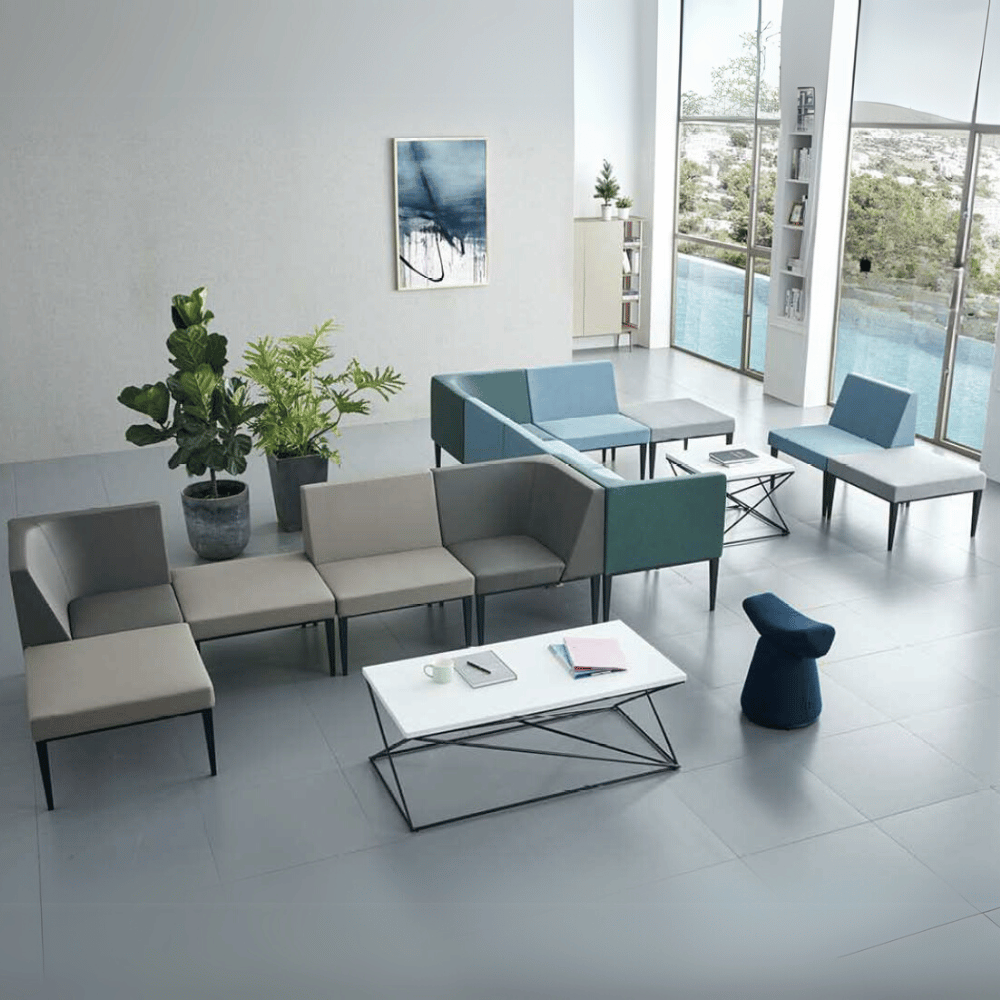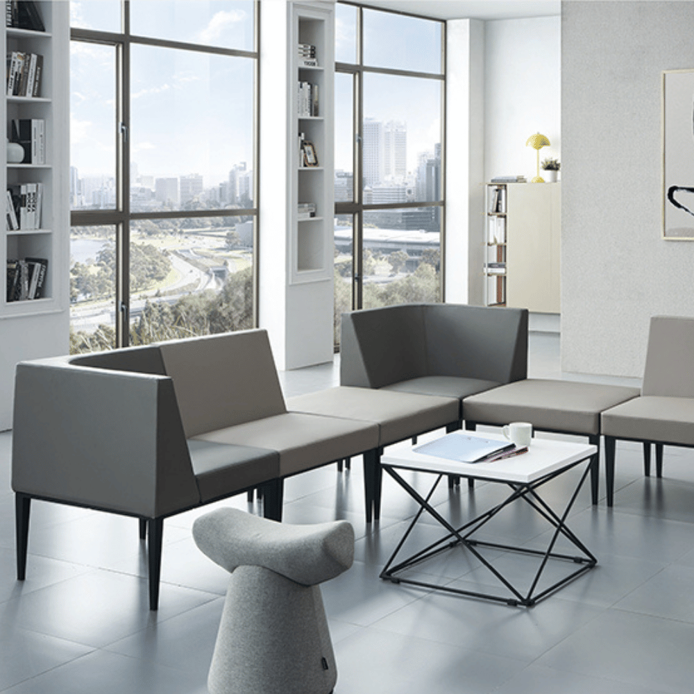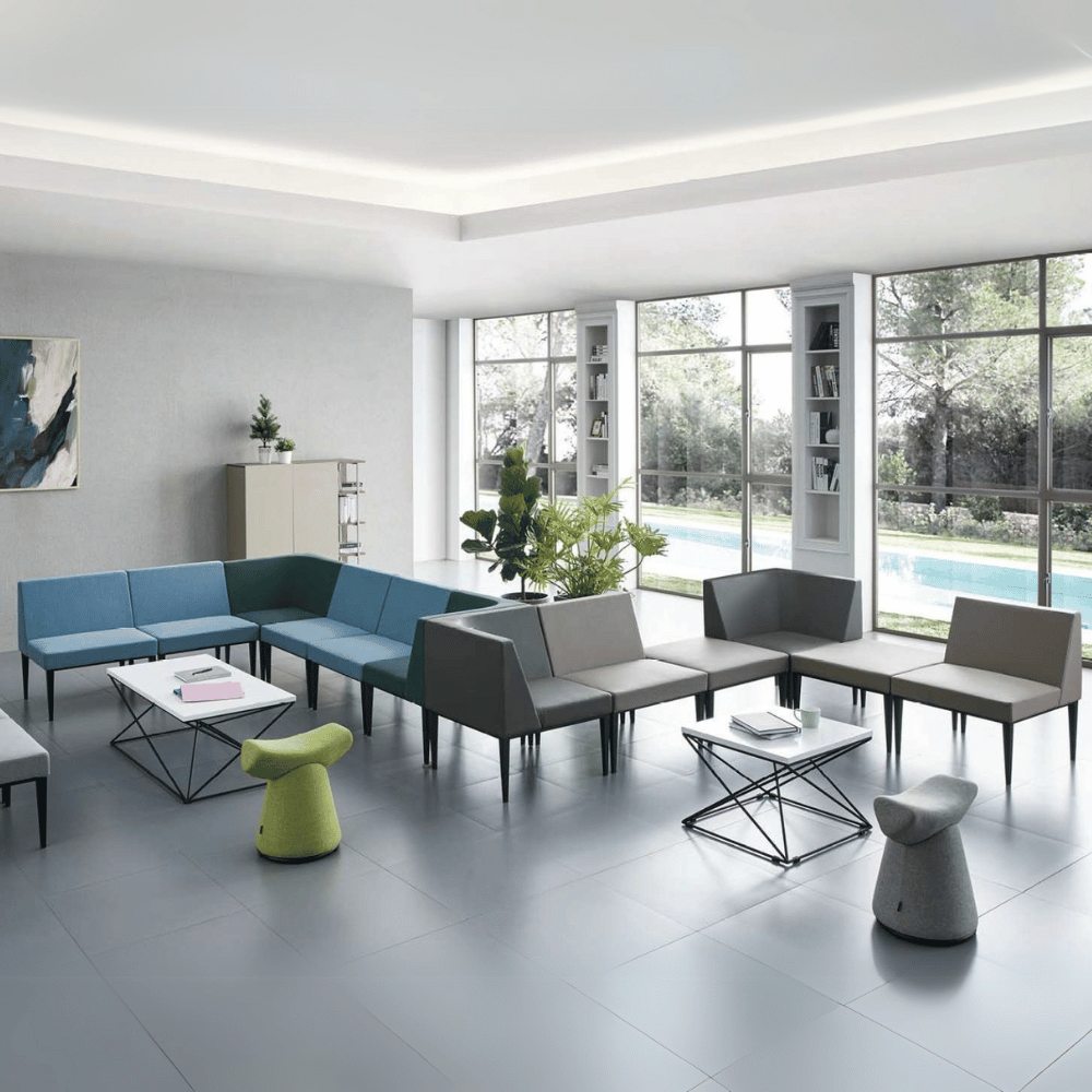 El sofá modular Mora cubique combina funcionalidad y estética contemporánea, ideal para espacios profesionales.
