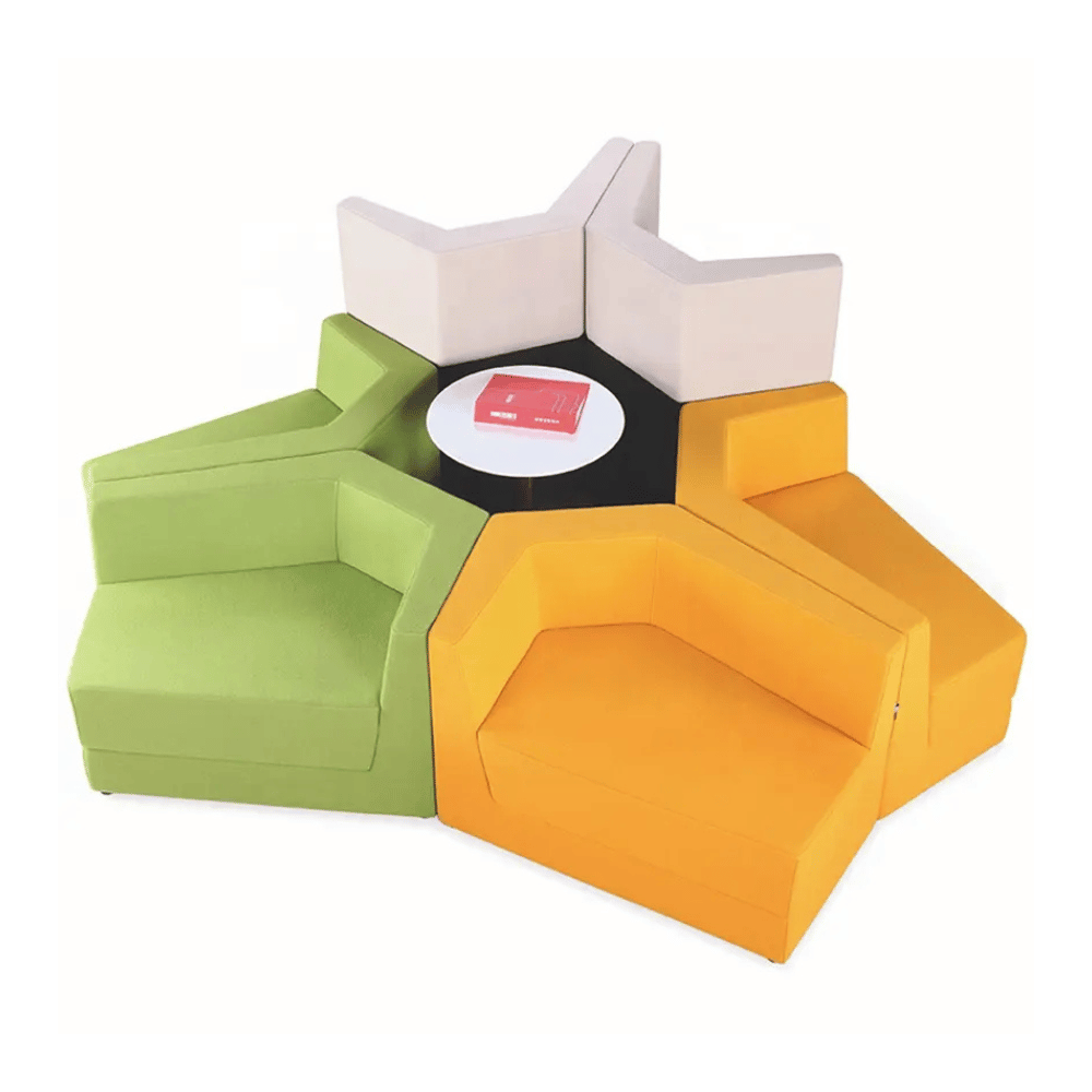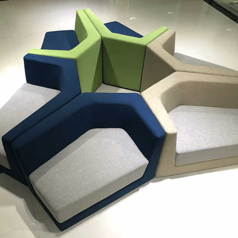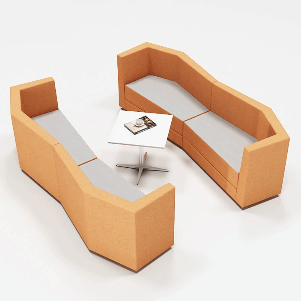 Este sofá modular está diseñado para optimizar la recepción en entornos profesionales.
