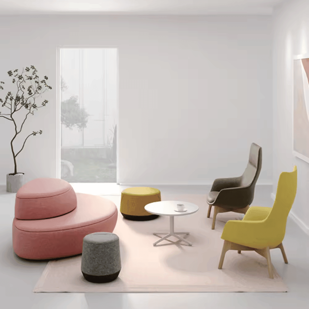 Este sofá es perfectamente adecuado para entornos de restauración, recepción o sala de estar. Su diseño redondeado y acogedor fomenta momentos de convivencia. También se integra armoniosamente en oficinas, ofreciendo un espacio de relajación para colaboradores o visitantes.