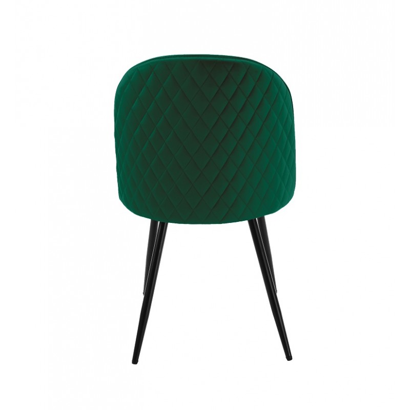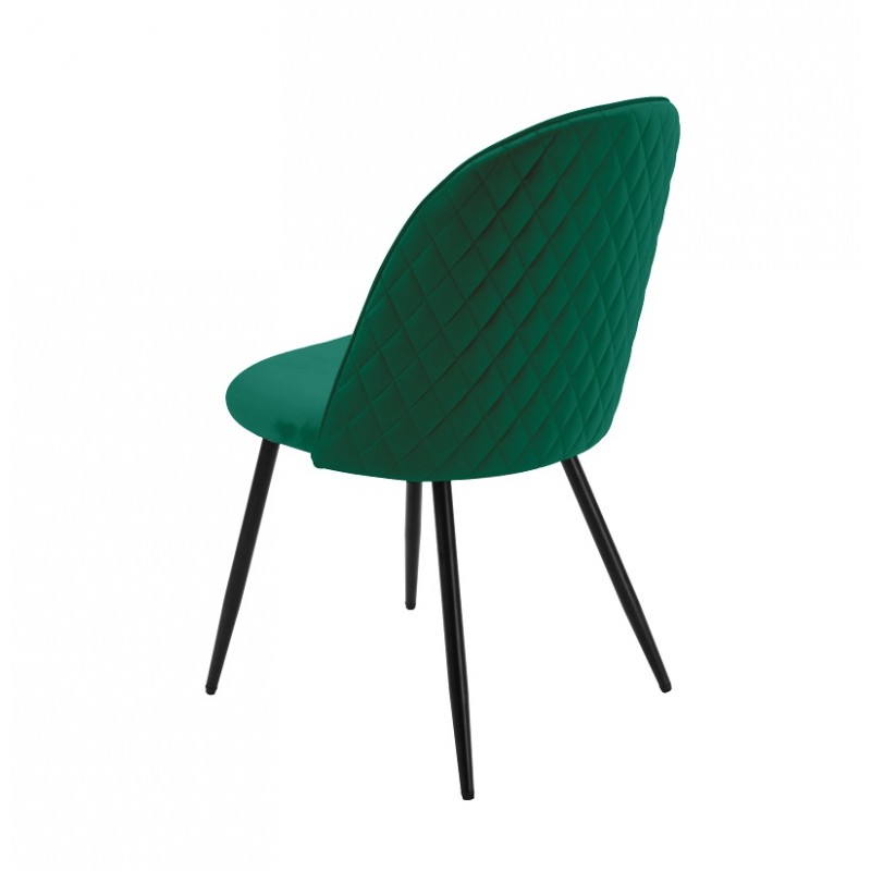 La estructura metálica garantiza una gran robustez y una estabilidad duradera. El asiento y el respaldo están tapizados en terciopelo verde, brindando suavidad y confort al usuario. Esta elección de materiales combina resistencia y estética para un uso intensivo.