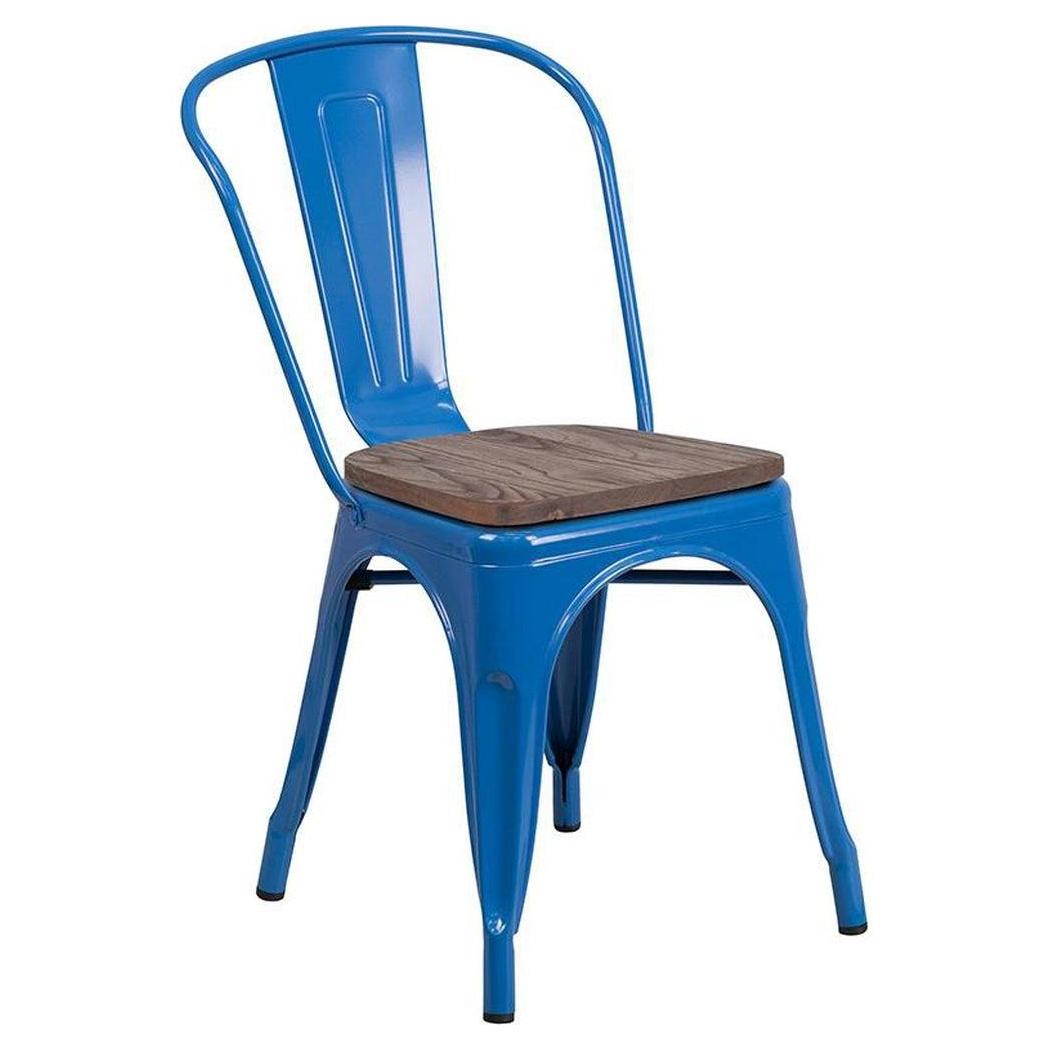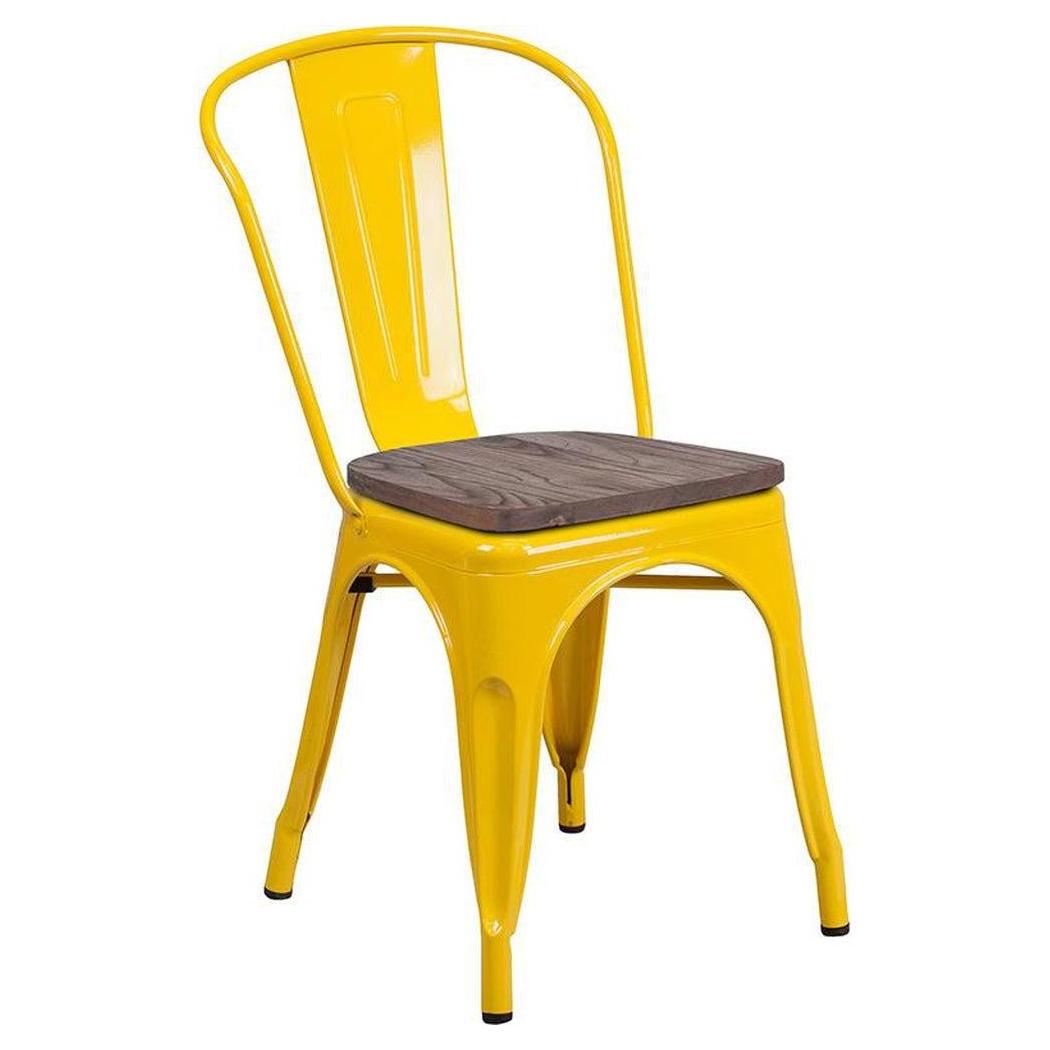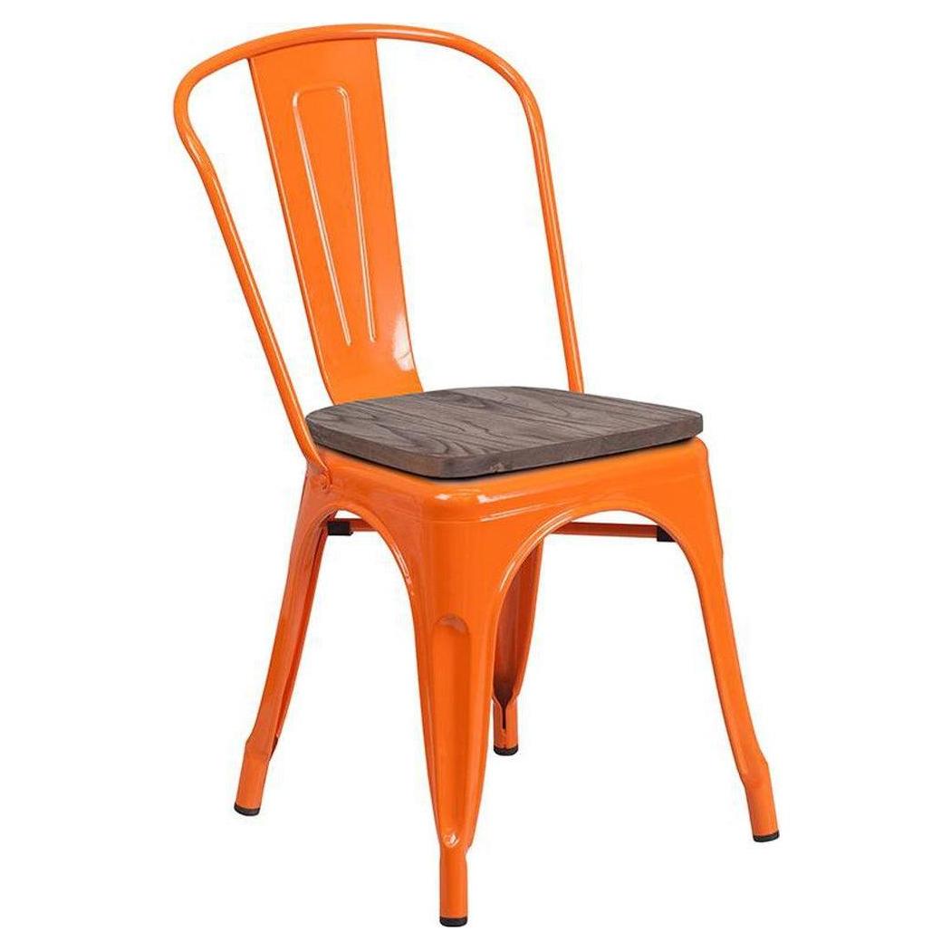 Esta silla apilable combina un diseño moderno y rústico, ideal para espacios de restauración,