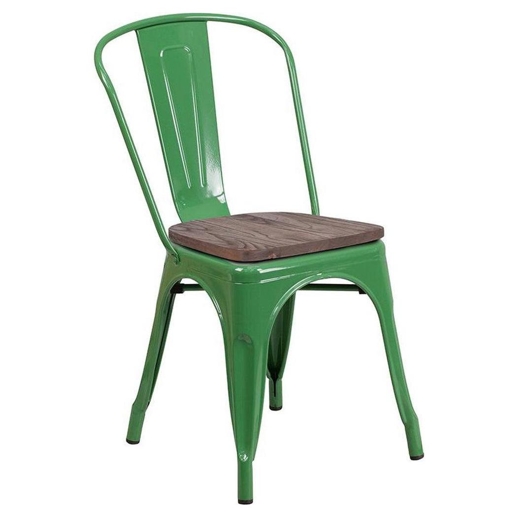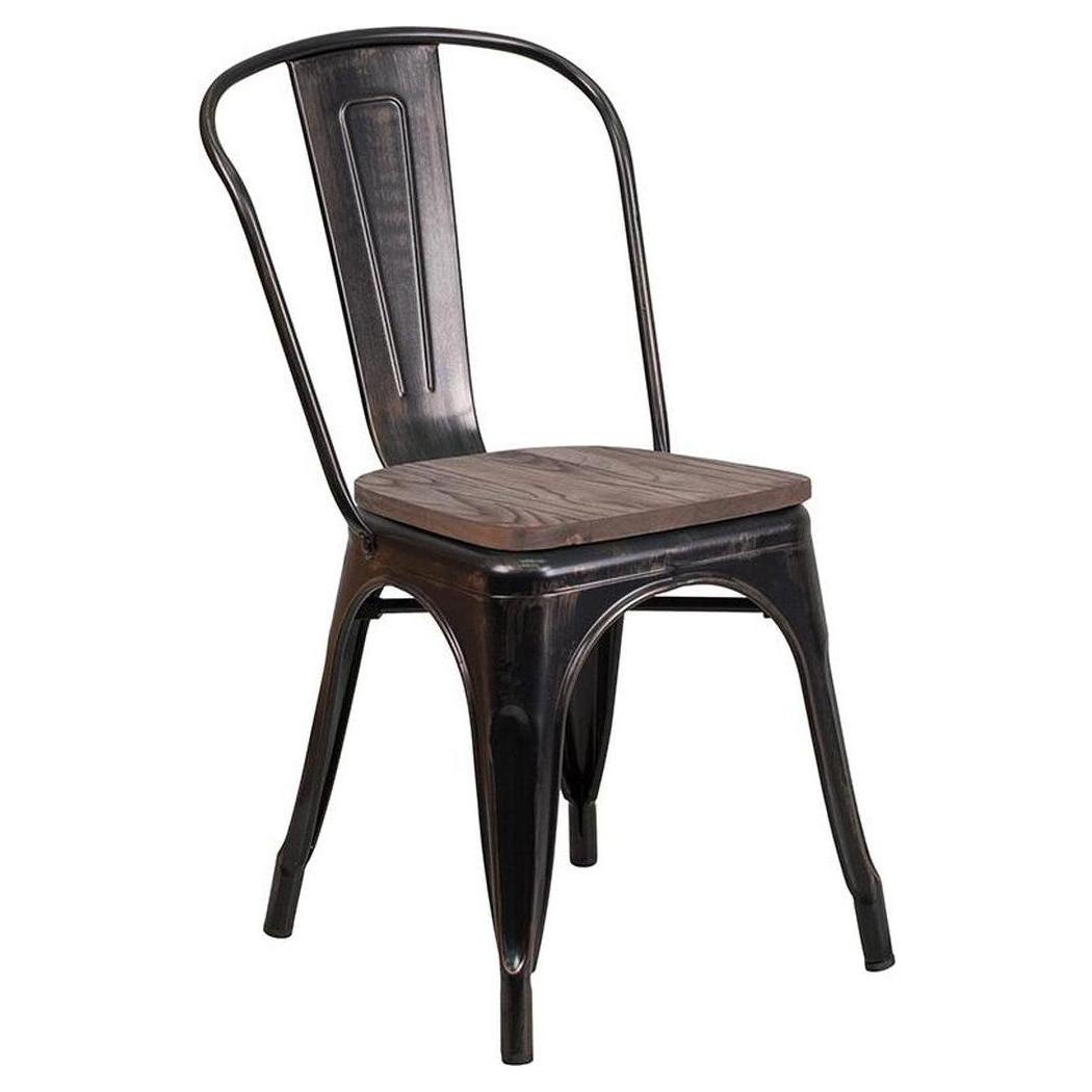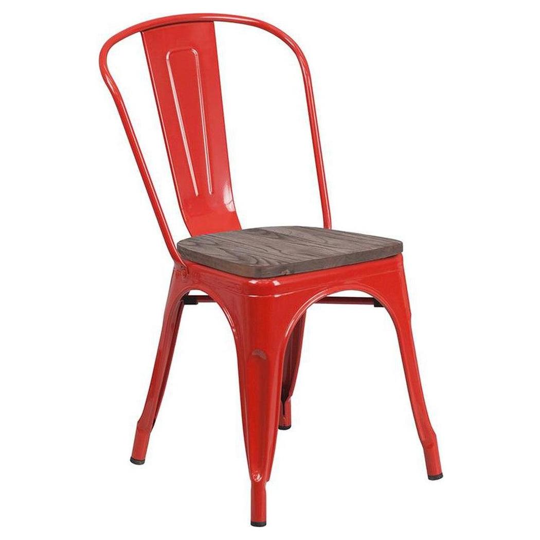Esta silla apilable combina un diseño moderno y rústico, ideal para espacios de restauración,