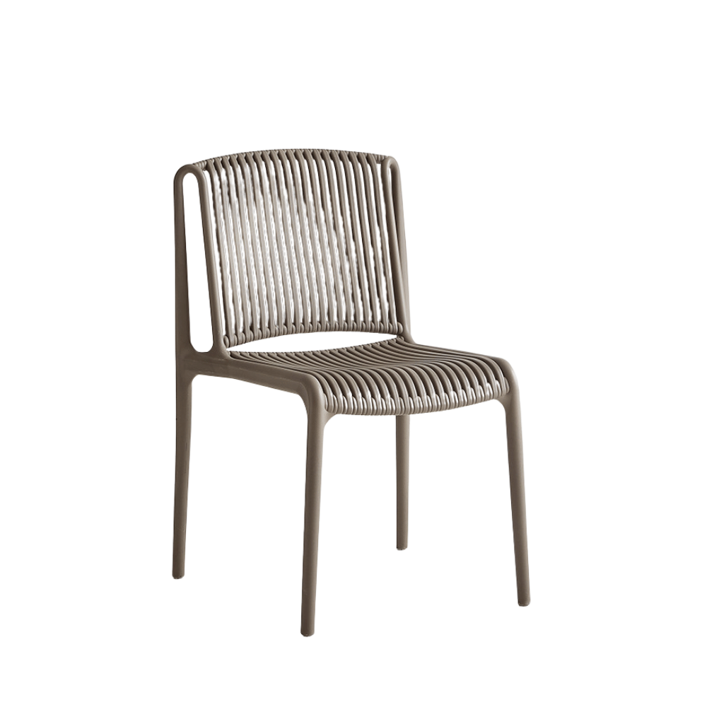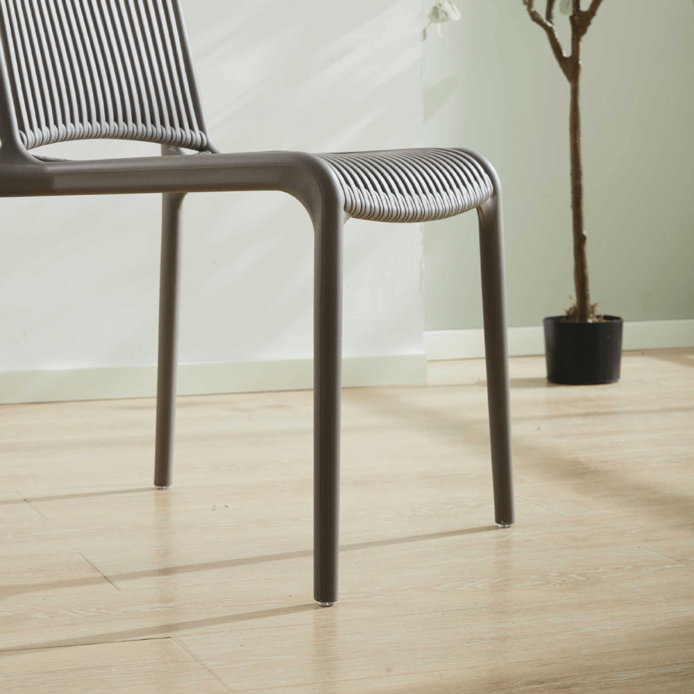 El acabado de la silla Muscada es a la vez moderno y refinado, con un tacto agradable. Su diseño resistente garantiza durabilidad, adecuada para un uso intensivo en exteriores.