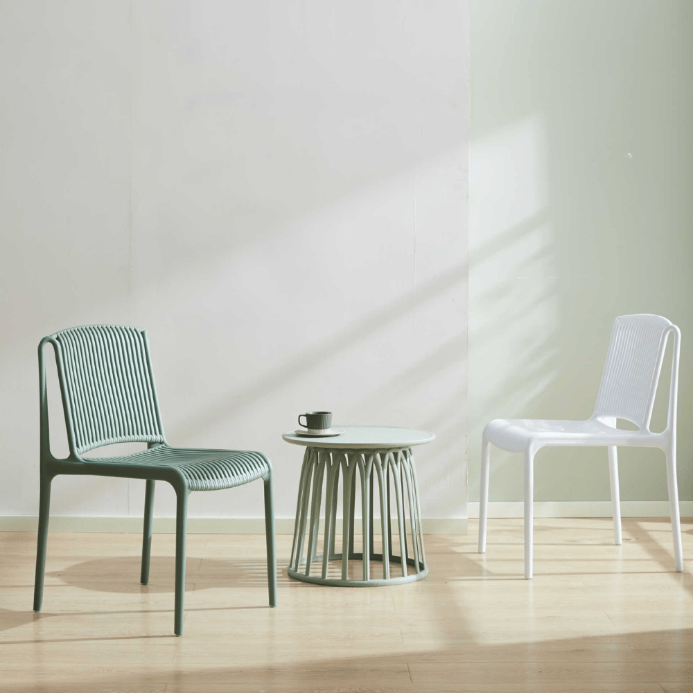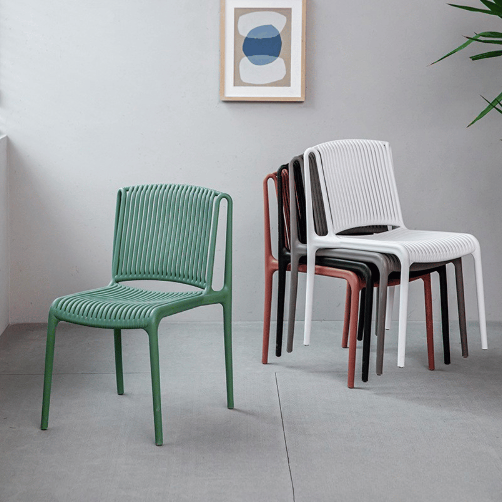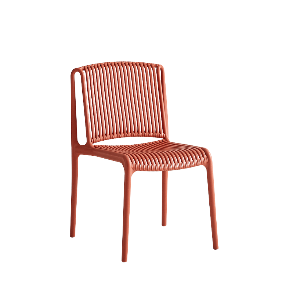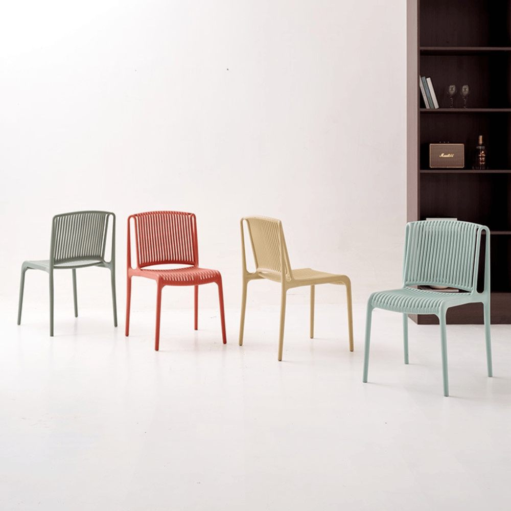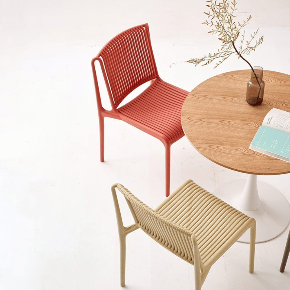 Diseñada para entornos de hostelería, esta silla es perfecta para terrazas de cafeterías, espacios lounge y eventos al aire libre. Su diseño apilable facilita el almacenamiento y la optimización del espacio, ofreciendo al mismo tiempo una estética moderna y acogedora.