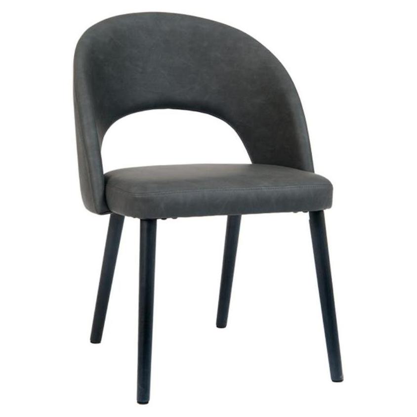 Chaise de imitación de cuero gris oscuro con patas de metal negro