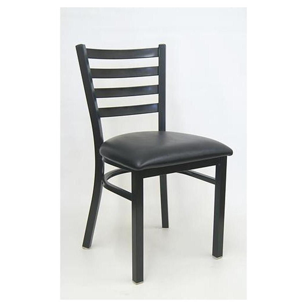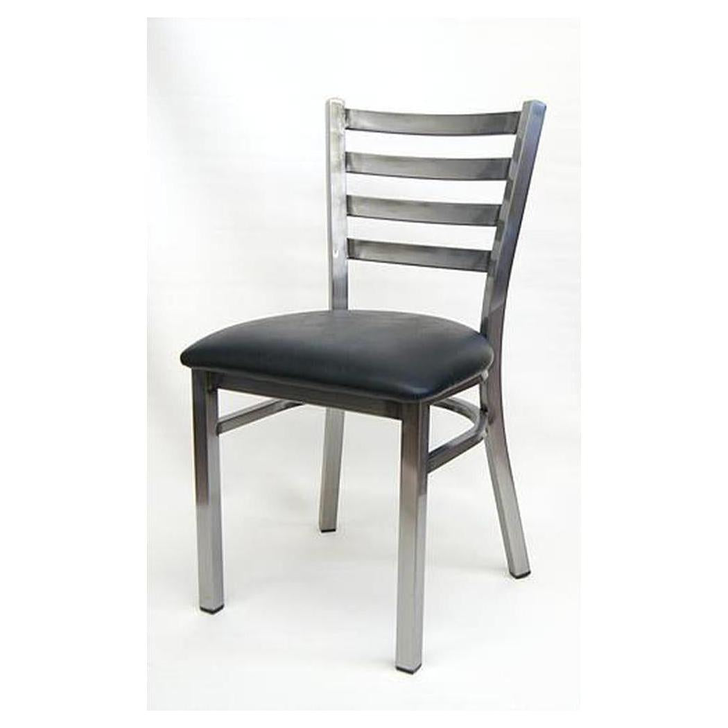 Esta silla de metal con respaldo tipo escalera y asiento de vinilo está diseñada para uso profesional en el sector de la restauración,