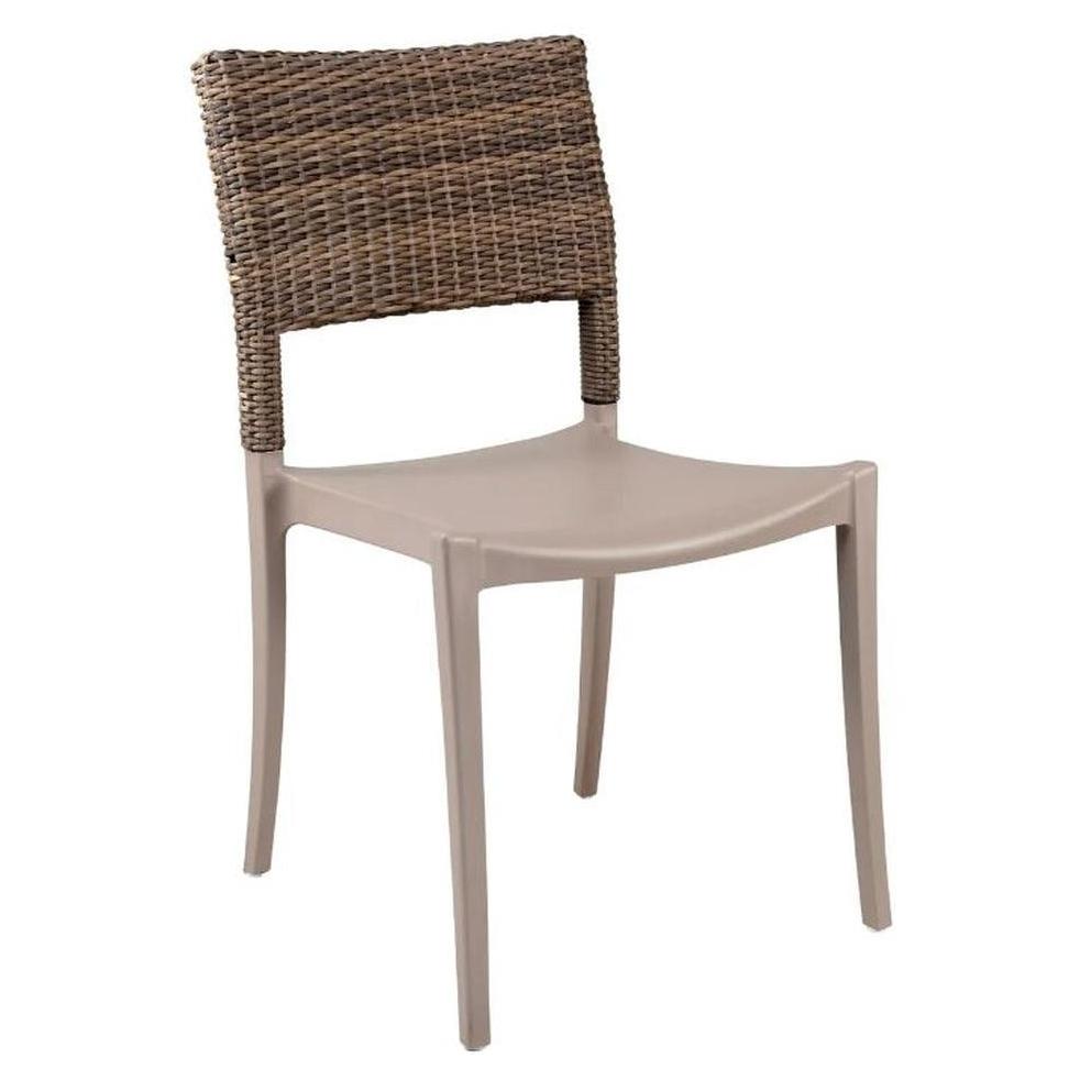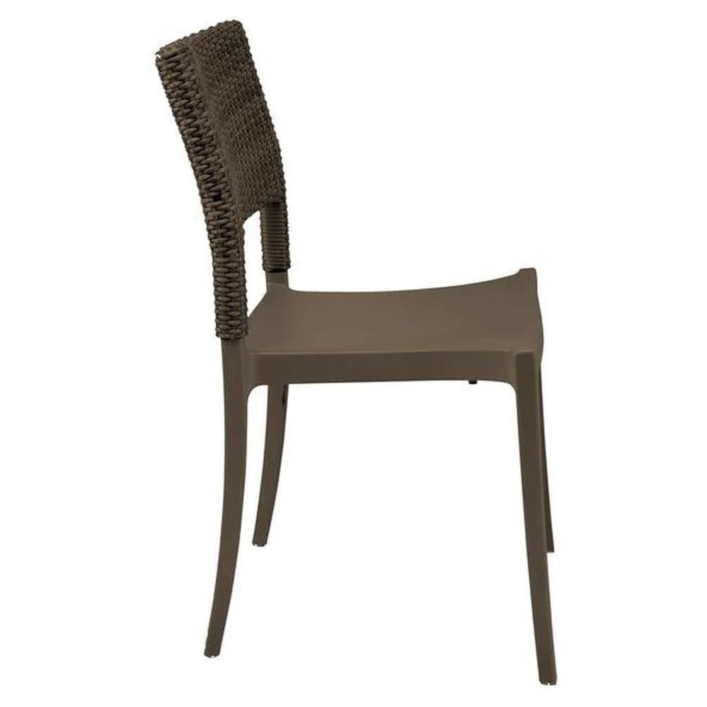 • Estructura / materiales: Su diseño combina un respaldo ergonómico de ratán sintético con una estructura de resina reforzada con fibra de vidrio,