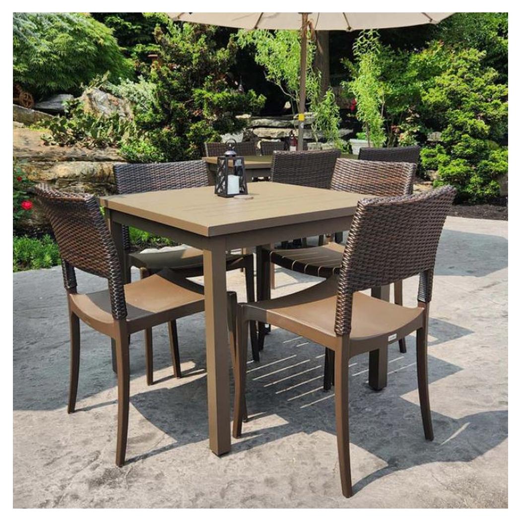 Esta silla de exterior combina un diseño clásico con materiales modernos para un uso versátil,