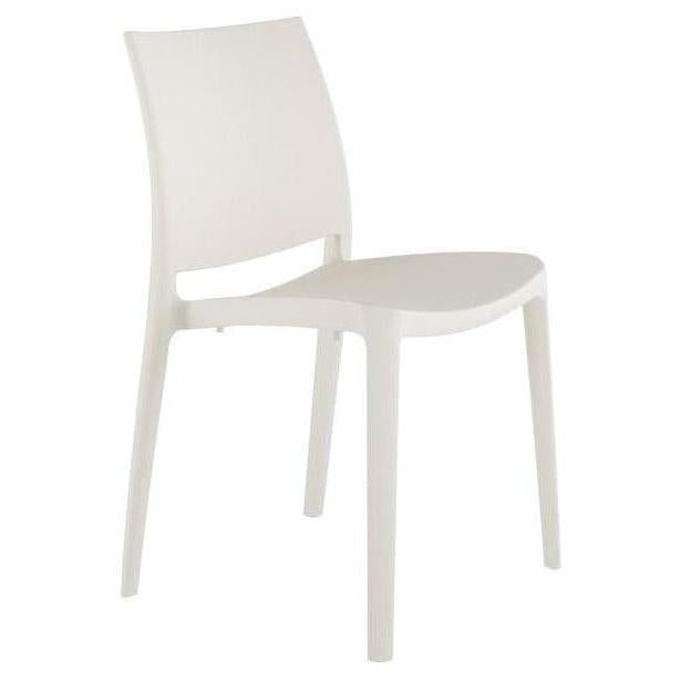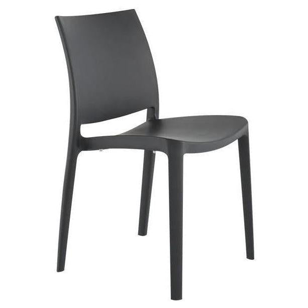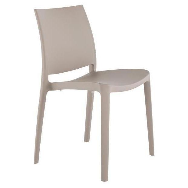 Esta silla de exterior combina diseño moderno y funcionalidad, ideal para espacios de restauración,