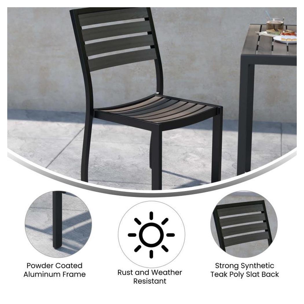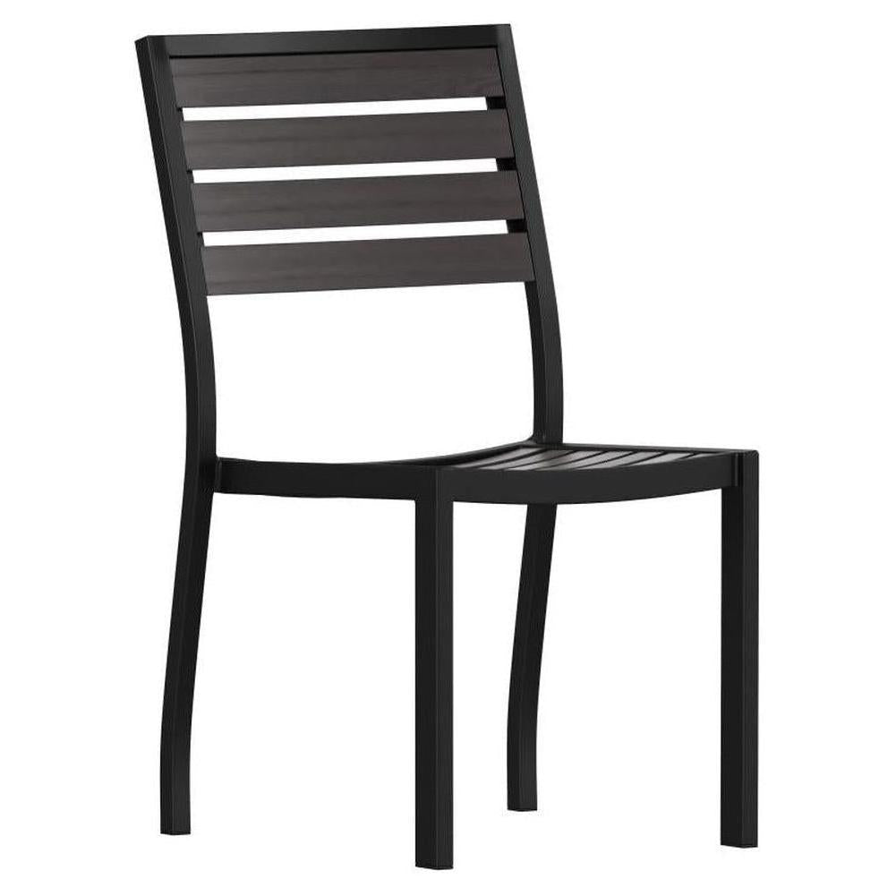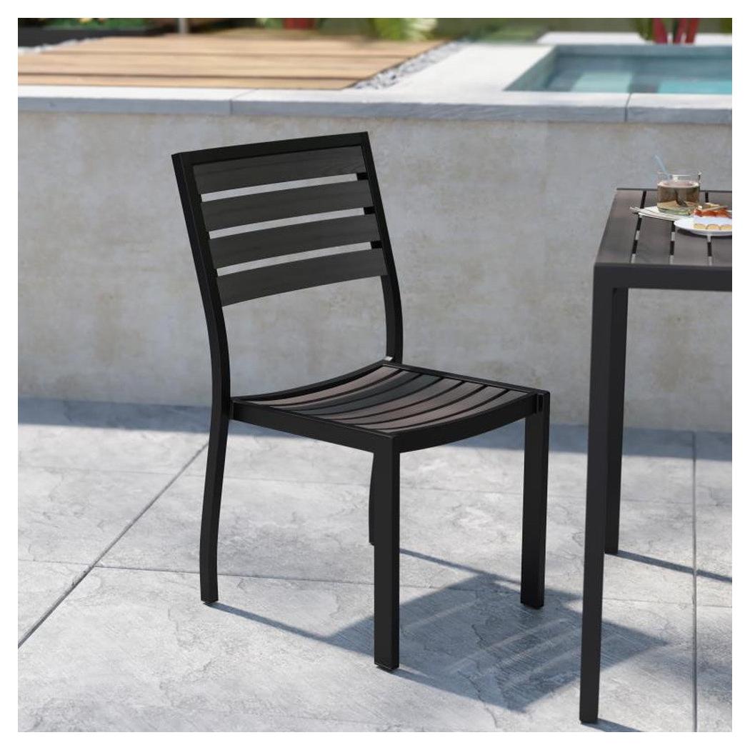 Esta silla exterior sin apoyabrazos está diseñada para uso profesional, ofreciendo una solución práctica para espacios al aire libre,