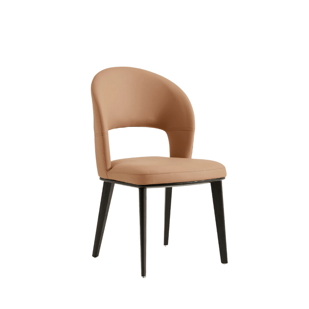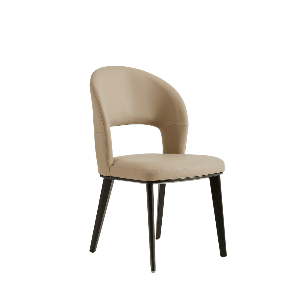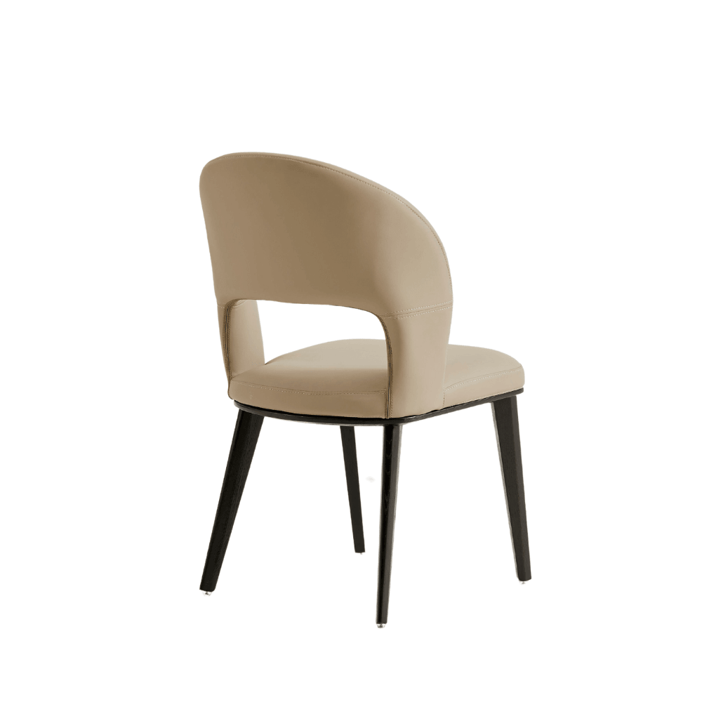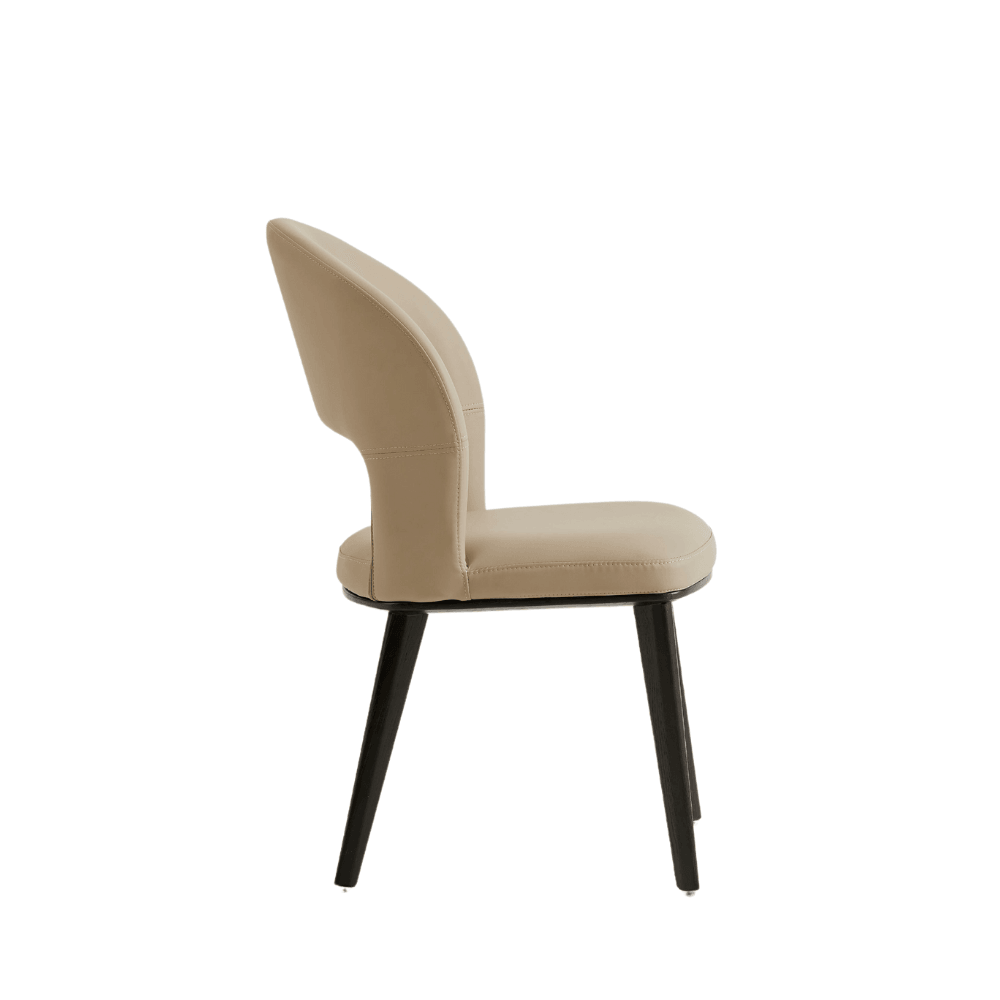 La silla Fyra presenta un acabado elegante y cuidado, con un tacto agradable gracias a su cuero de calidad. Su diseño robusto asegura una larga durabilidad, incluso en contextos de uso frecuente.