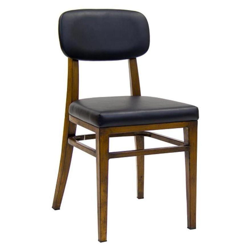 Esta silla de metal con respaldo alto vertical se integra armoniosamente en varios entornos profesionales,