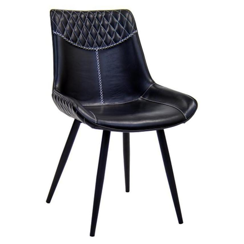 Esta silla interior de metal negro está diseñada para uso profesional, especialmente en el sector de la restauración,