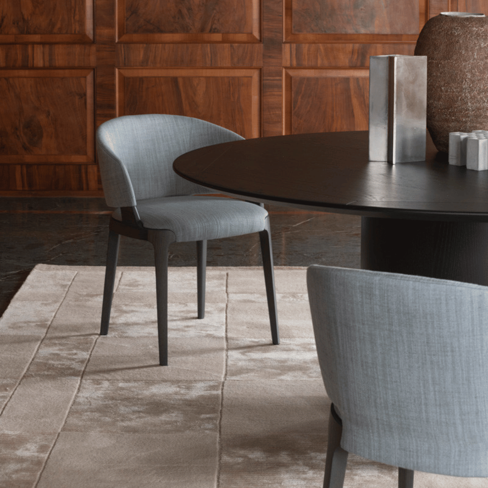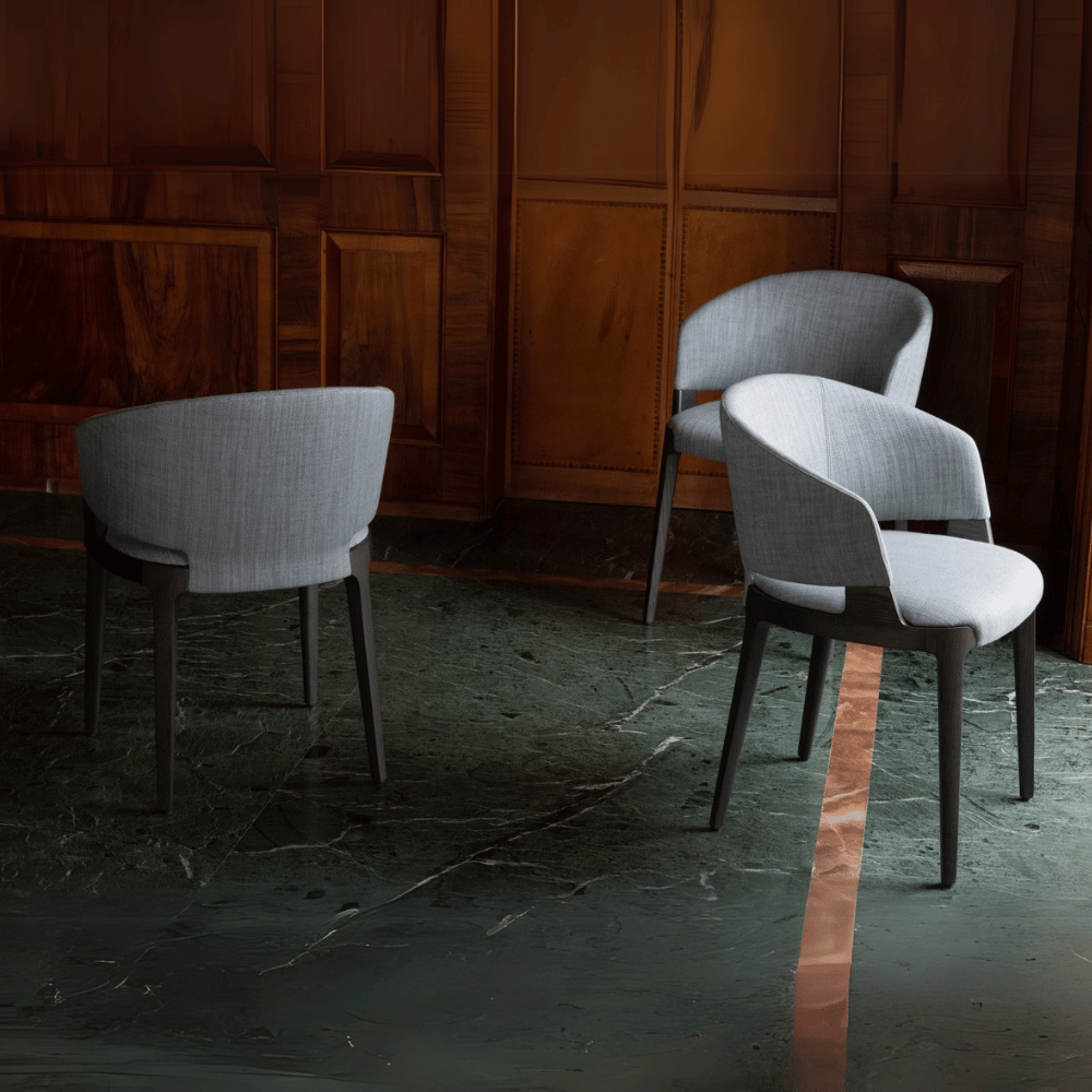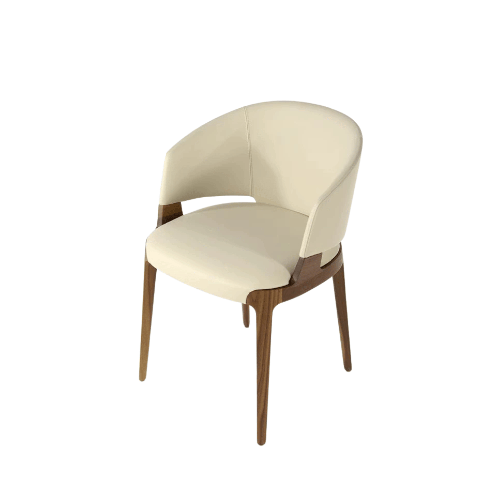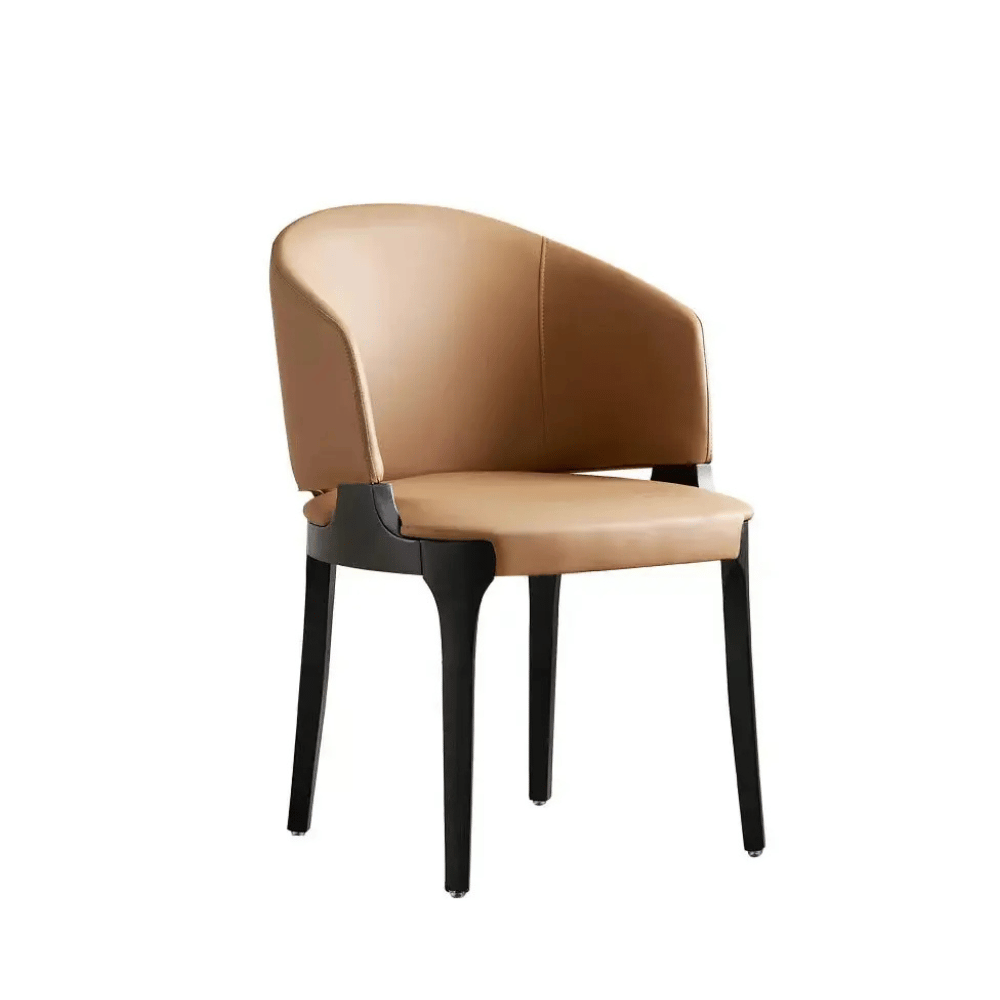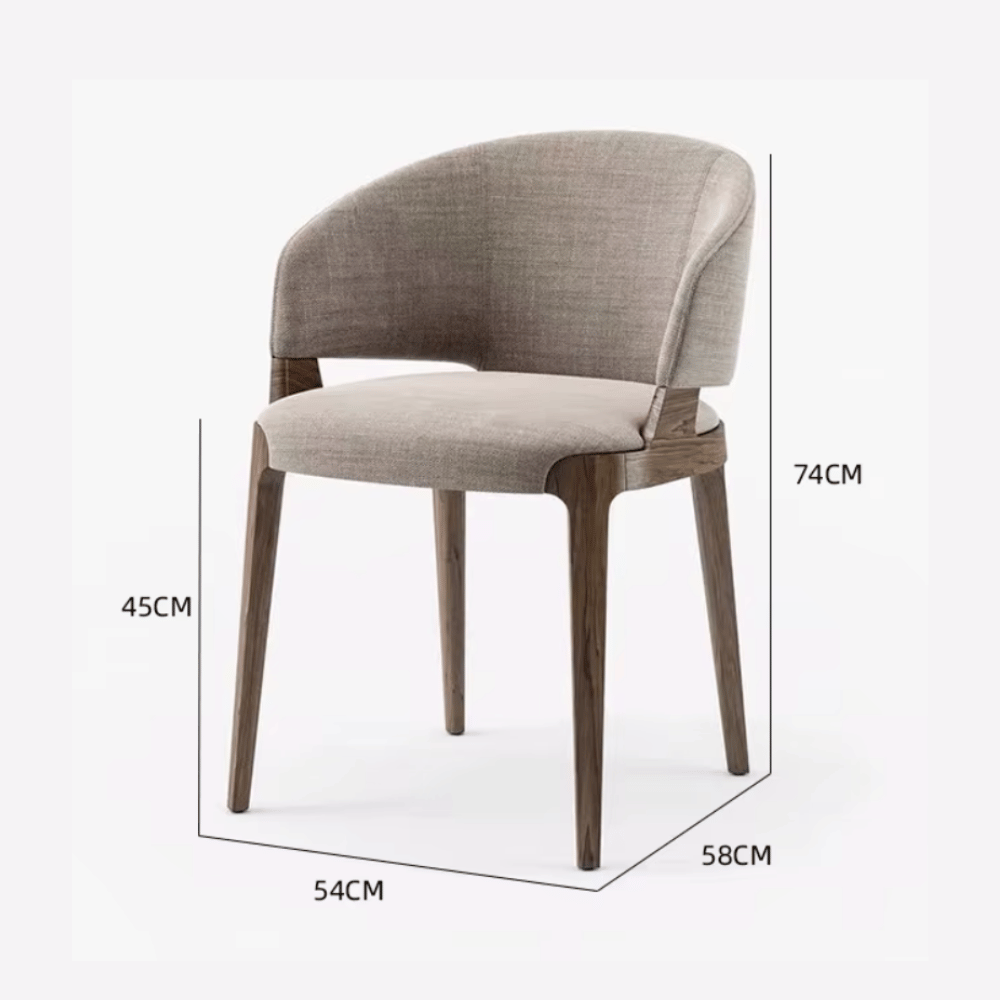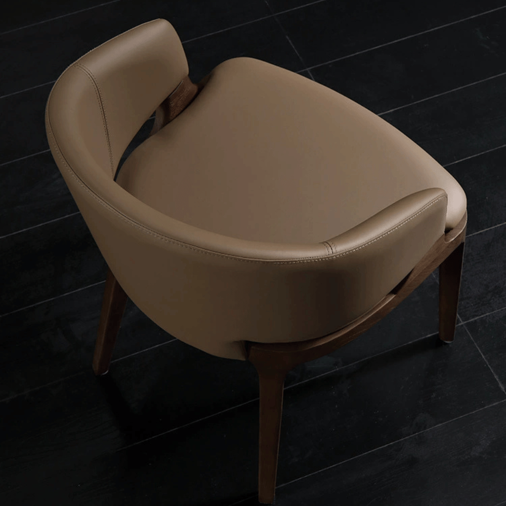La silla cuenta con una estructura interna de madera de alerce, garantizando estabilidad y durabilidad mejoradas. Su acolchado de espuma de poliuretano moldeada brinda un soporte cómodo manteniendo su forma con el tiempo. El revestimiento de tela suave o cuero grueso asegura un toque elegante y resistencia al desgaste diario.