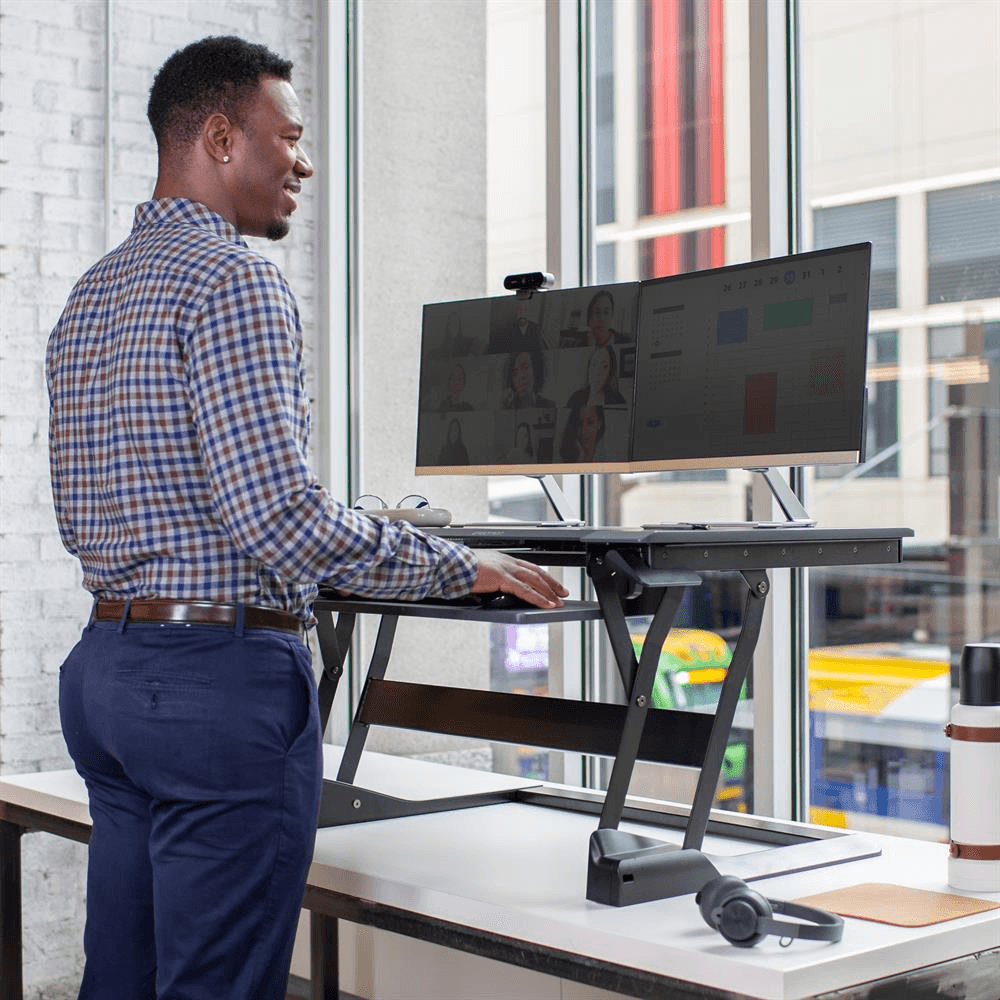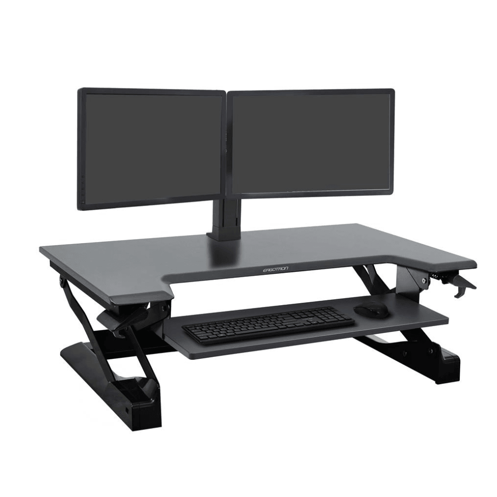 Transforme tu espacio de trabajo con el conversor de escritorio de pie Ergotron WorkFit-TL, diseñado para optimizar la comodidad y la productividad.