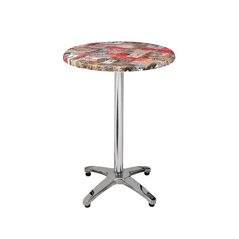 El tablero de 70 cm de diámetro y la altura de 114 cm son dimensiones estándar que facilitan la integración en diversos espacios. Para uso en exteriores, se recomienda preferir tableros con decoración clara para evitar cualquier alteración debido a la exposición directa al sol o la lluvia. Bajo pedido, Supply8 ofrece adaptaciones personalizadas en términos de dimensiones, acabados y colores para satisfacer precisamente las necesidades específicas de cada proyecto.