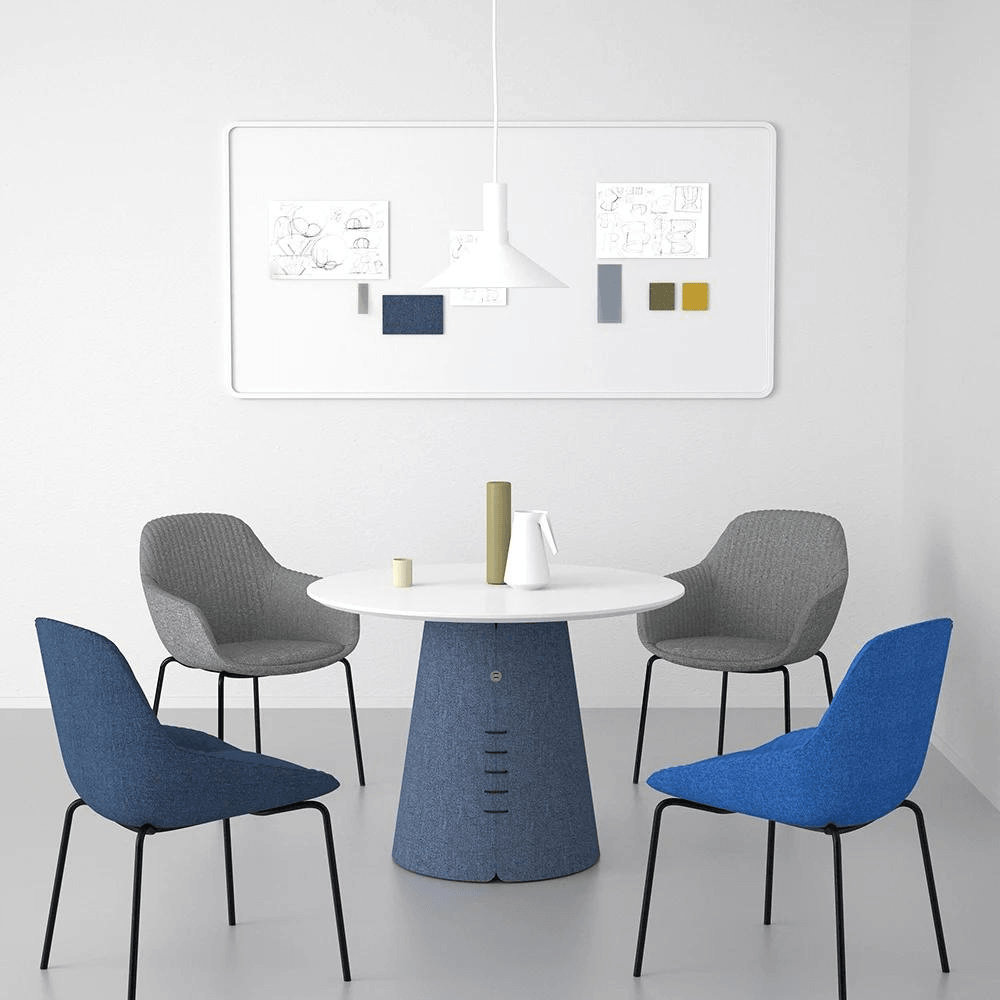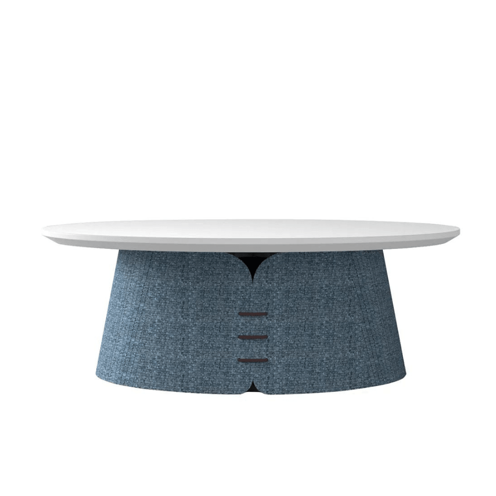 Diseñada con materiales de calidad, la mesa tiene una estructura robusta y estable. Su diseño redondeado favorece una circulación fluida en los espacios. Los acabados están cuidadosamente trabajados para garantizar una estética refinada.