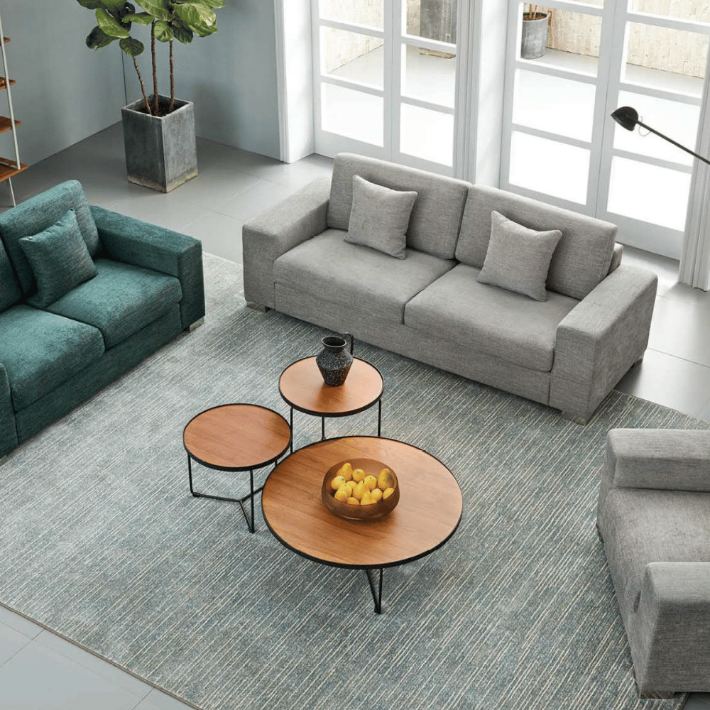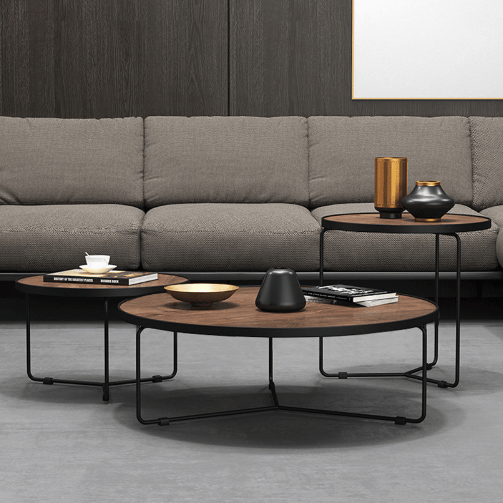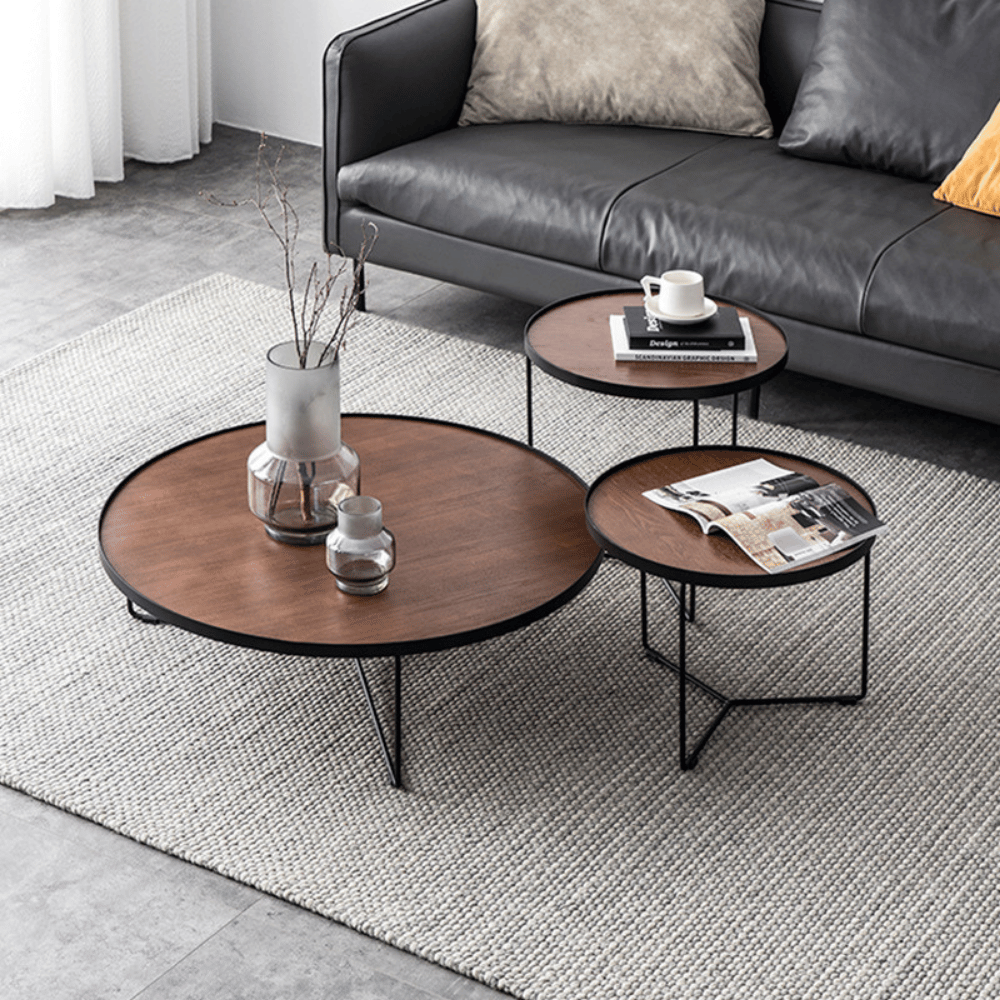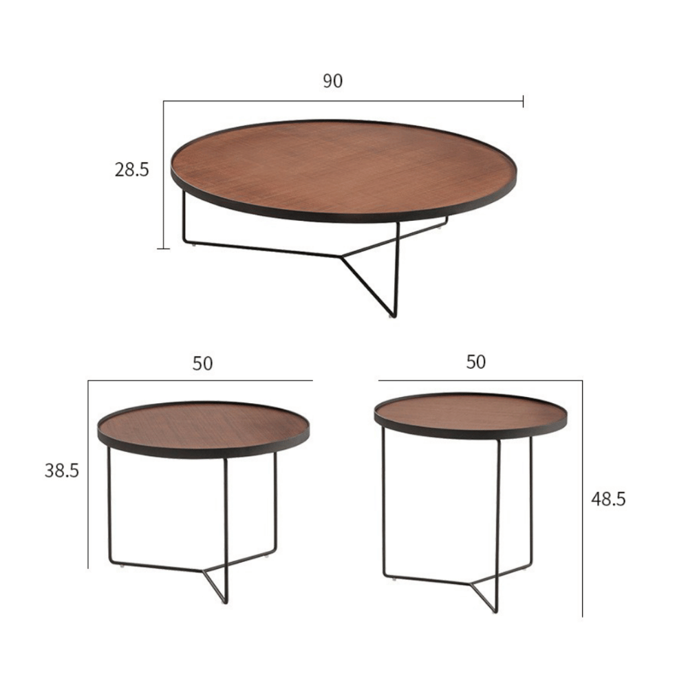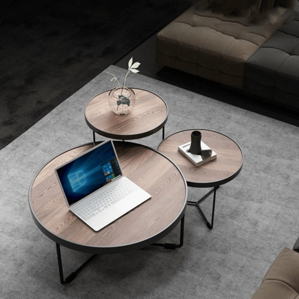 **Mesa auxiliar redonda de madera Bilbao – configuración combinada**