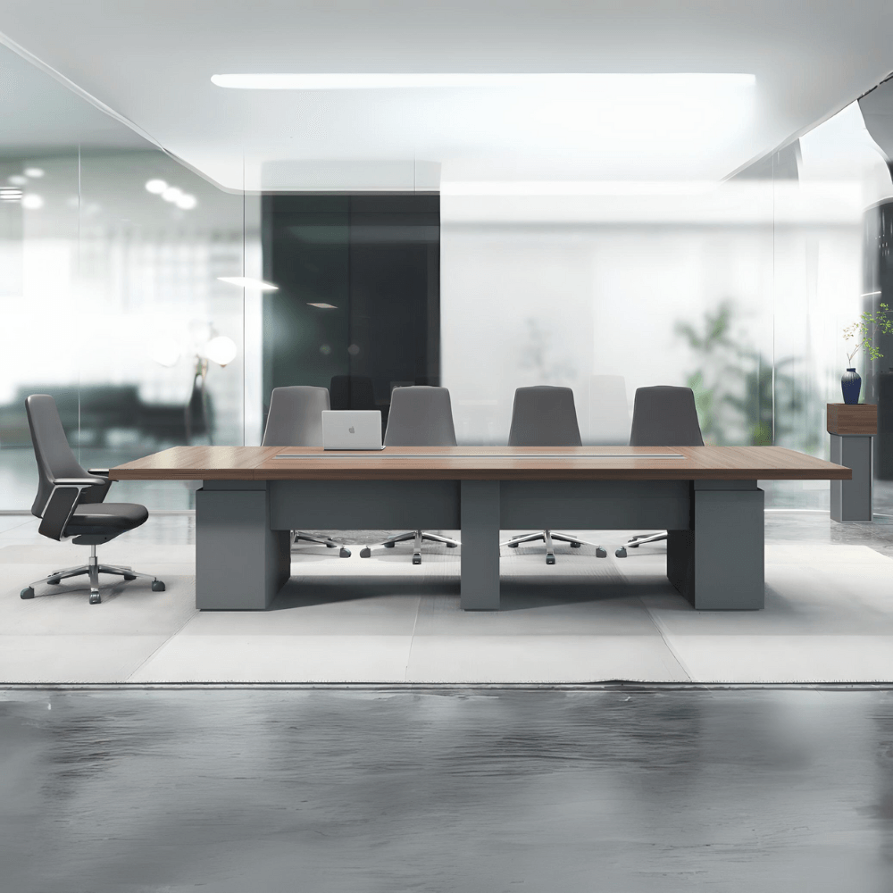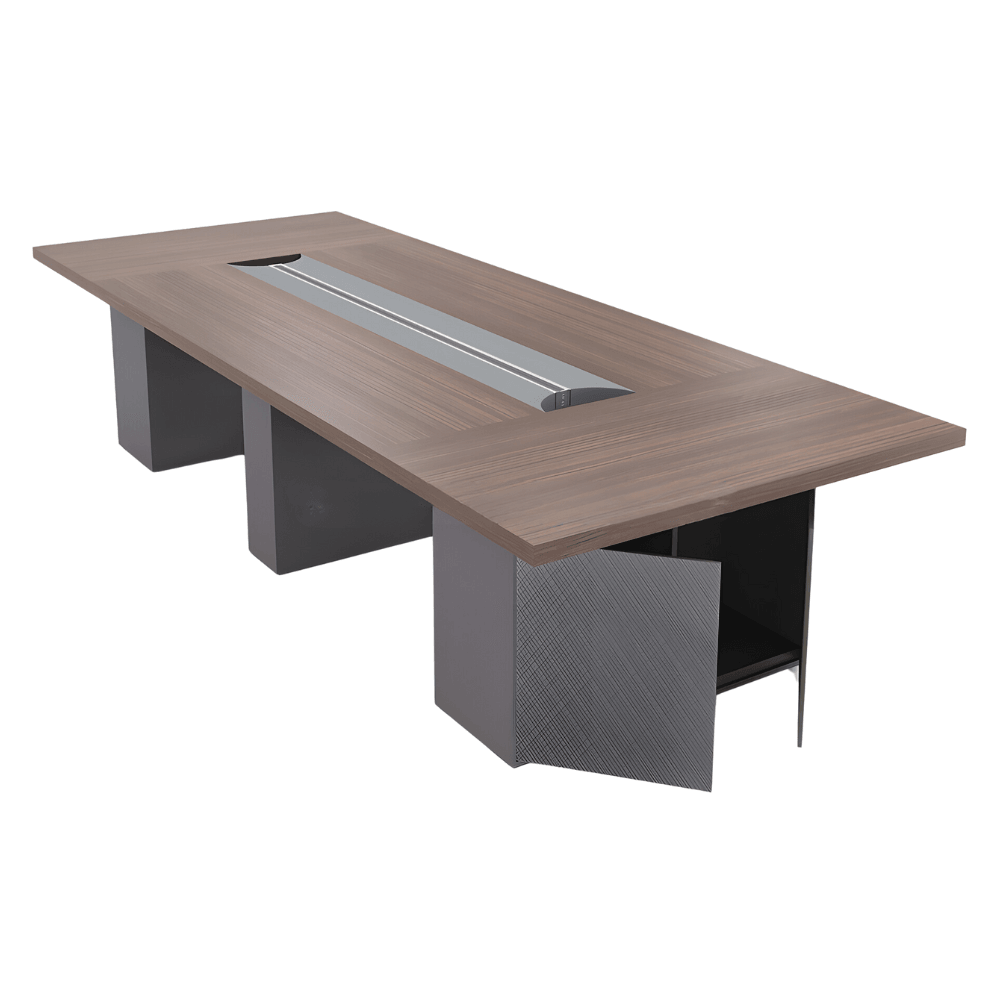 Mesa de reuniones de oficina Changwon de madera con almacenamiento y gestión de cables