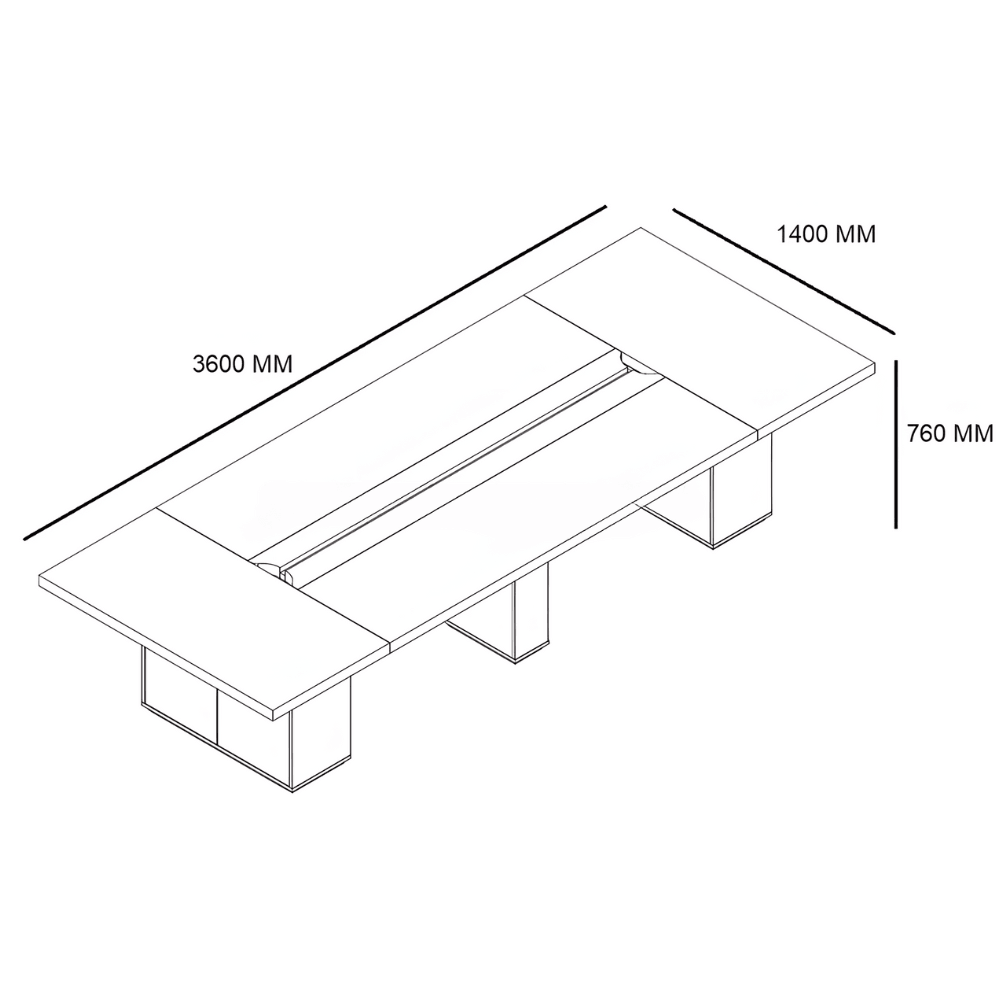 Esta mesa es ideal para reuniones de equipo, conferencias y sesiones de lluvia de ideas. Su diseño sobrio y funcional se integra perfectamente en entornos de oficina, hotelería o eventos. Permite acomodar cómodamente de 12 a 18 personas, fomentando la colaboración y el intercambio de ideas.