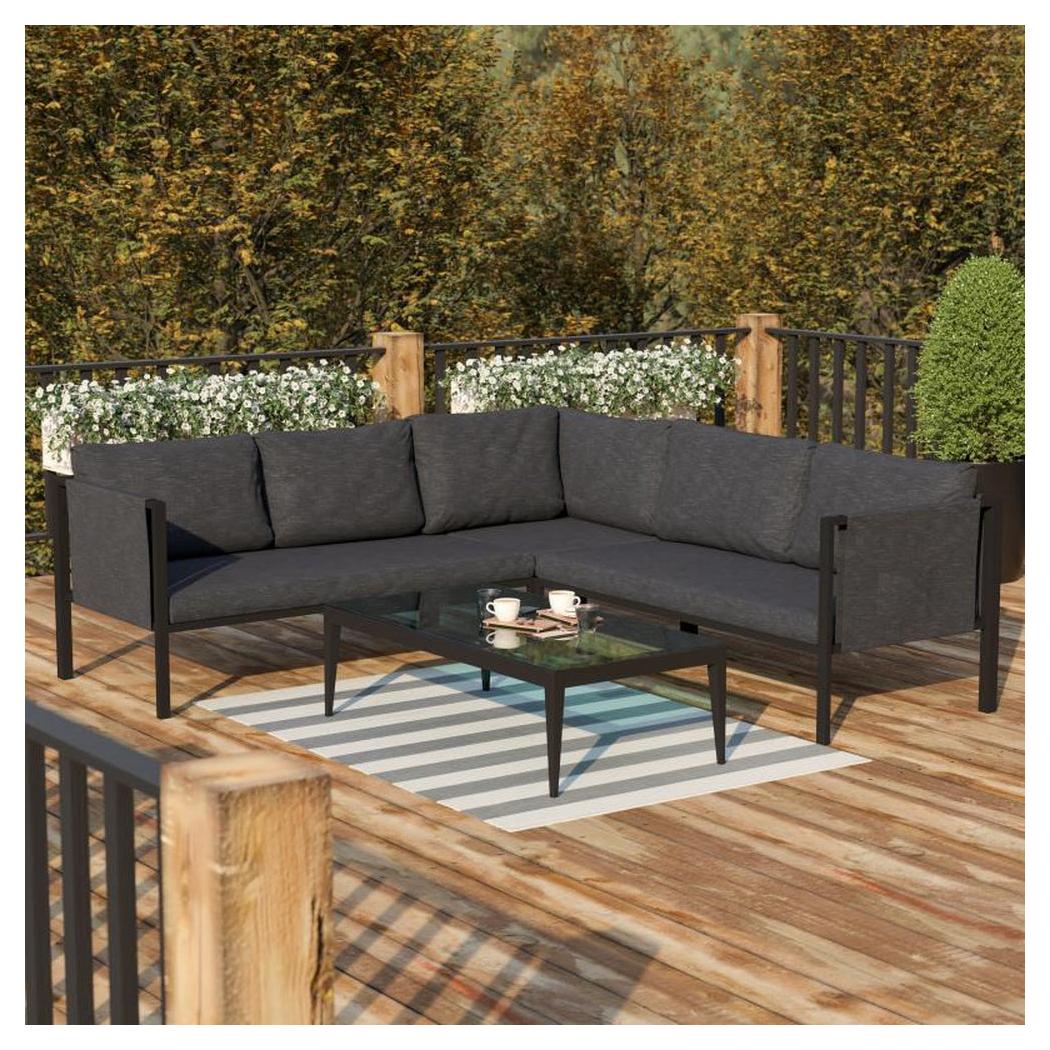 Información adicional: Dimensiones: 216,5 cm de ancho, 216,5 cm de profundidad, 67,3 cm de altura, Peso máximo soportado: 589,67 kg, Cojines de color carbón,