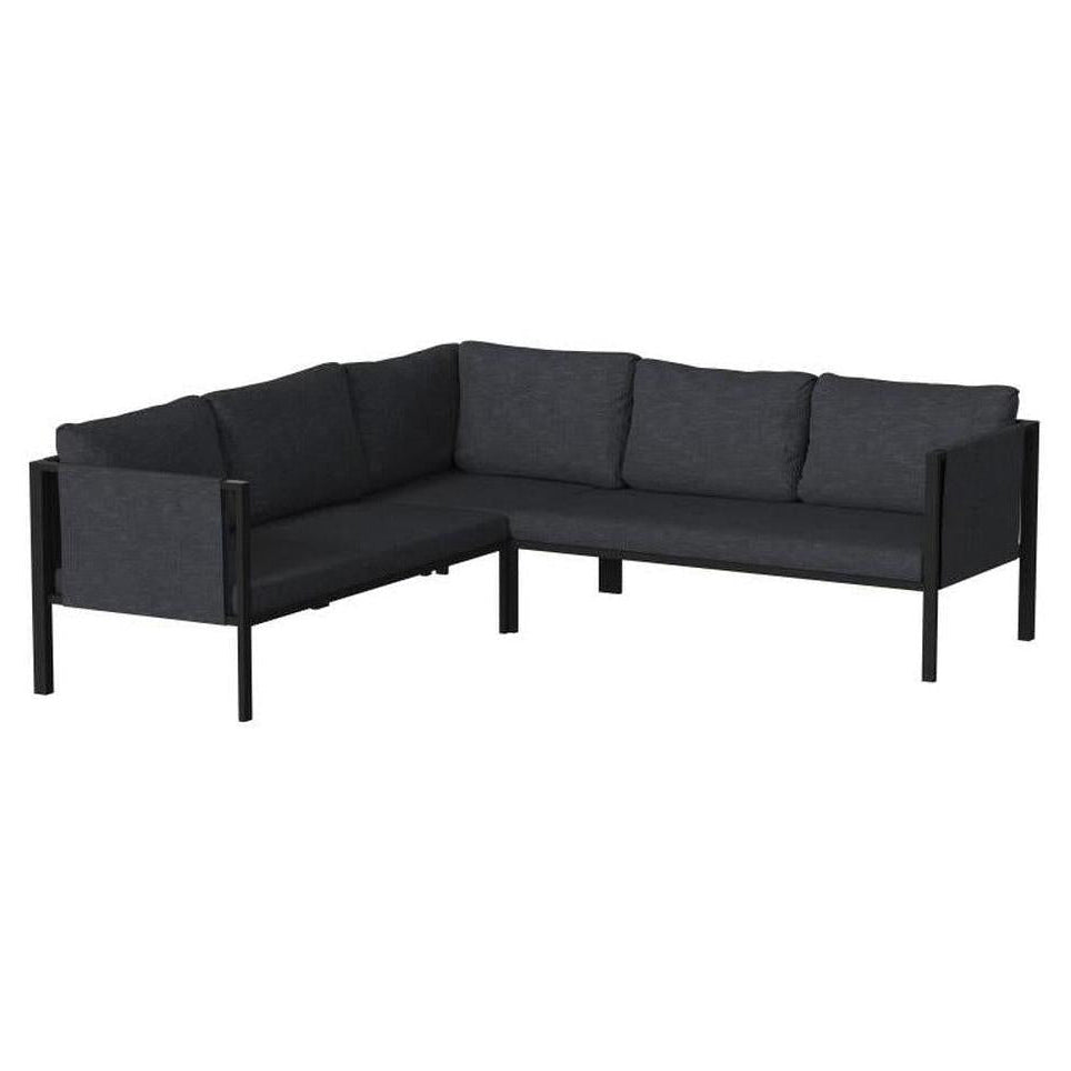 Este mobiliario de esquina está diseñado para uso interior y exterior, ofreciendo una solución de confort para espacios de descanso,