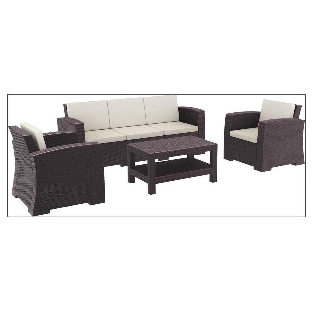 Salón de jardín DOMINGO para exterior de resina para 5 personas – 4 piezas con cojines