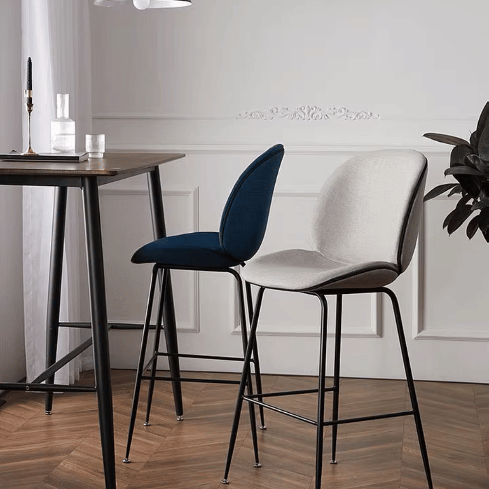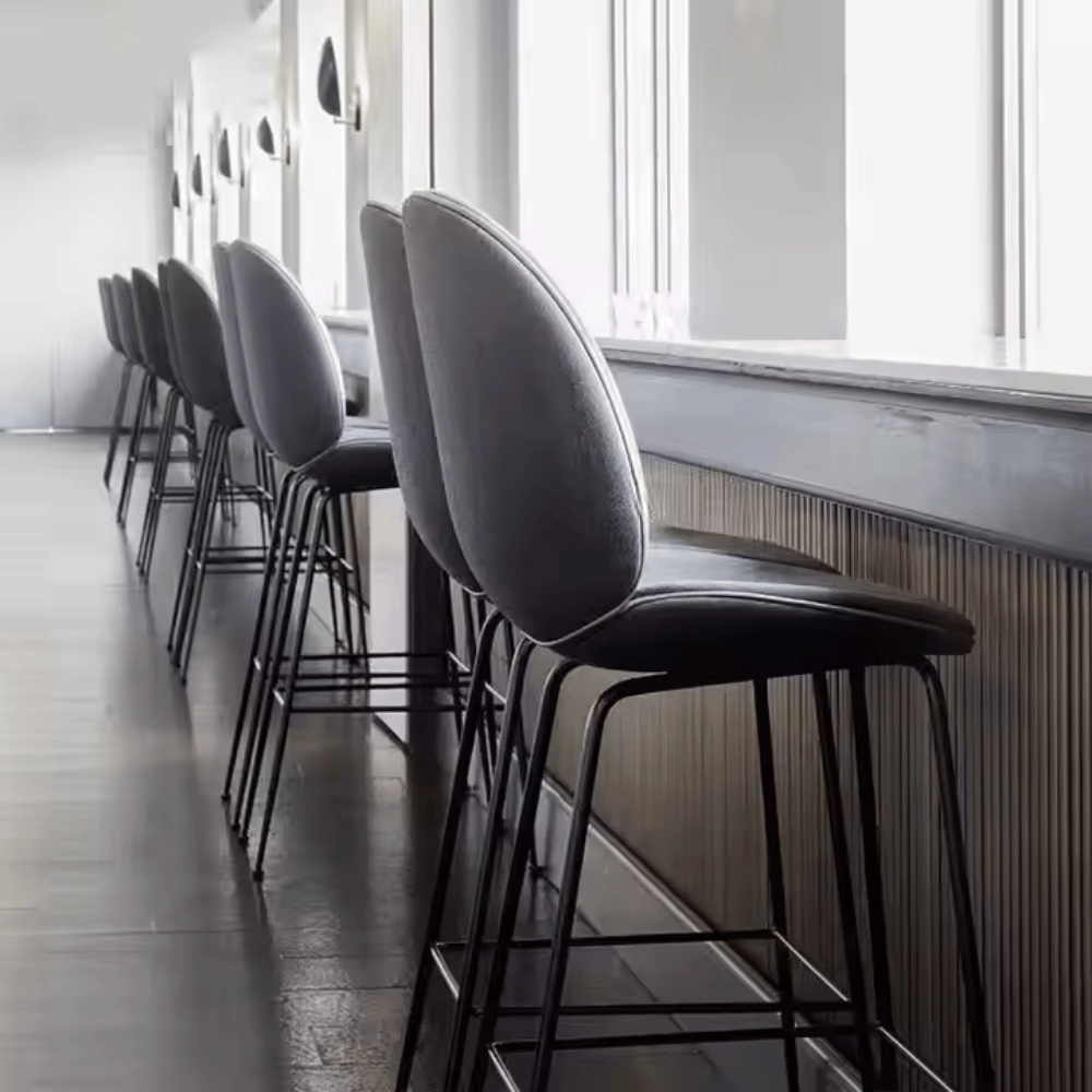 La estructura del taburete es de metal, garantizando estabilidad y durabilidad. El acolchado de espuma de poliuretano de alta densidad asegura un confort prolongado, manteniendo su forma incluso después de un uso intensivo. El tapizado de tela está diseñado para resistir el desgaste diario.