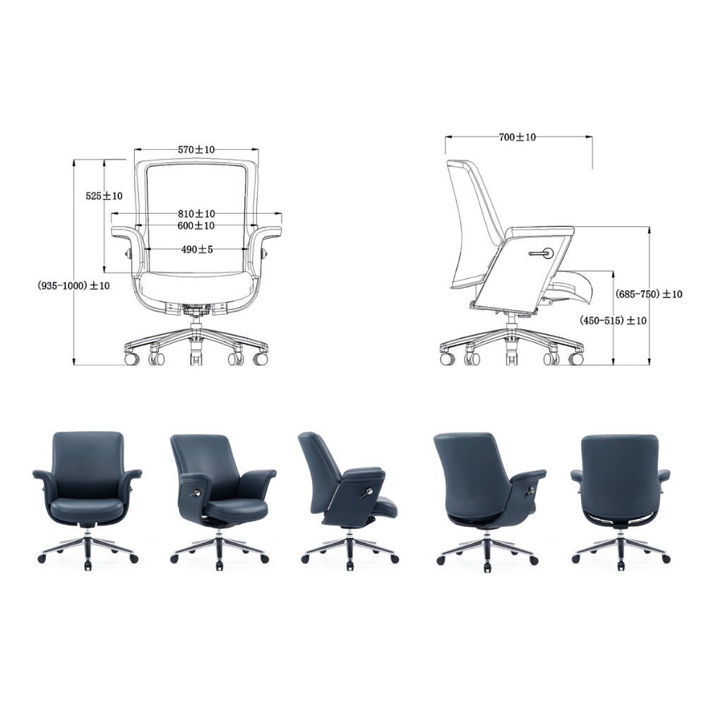 **Sillón de oficina Adana-M de cuero – respaldo medio**