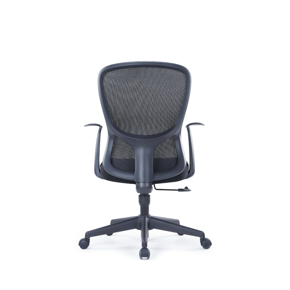 La silla cuenta con una estructura robusta que garantiza una estabilidad duradera. Su respaldo medio, inspirado en una silueta elegante, ofrece un soporte adecuado mientras favorece una buena circulación del aire. Los reposabrazos anchos y lisos aseguran un apoyo cómodo para los codos.