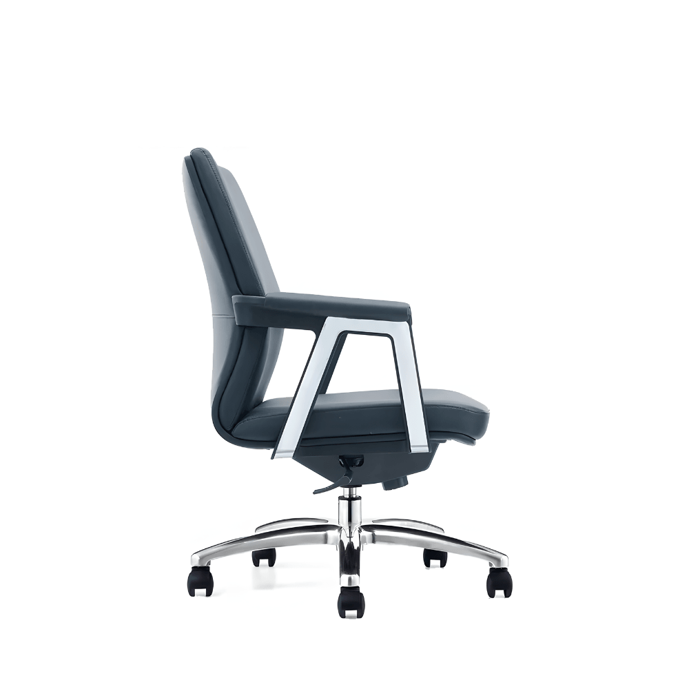 Fabricado en cuero genuino, este sillón combina durabilidad y sofisticación. Su diseño con respaldo medio alto garantiza un soporte adecuado para la espalda, favoreciendo una postura saludable durante todo el día. Los materiales utilizados son seleccionados por su resistencia y longevidad.