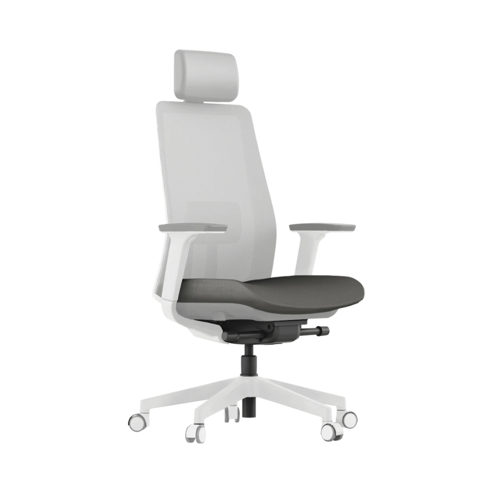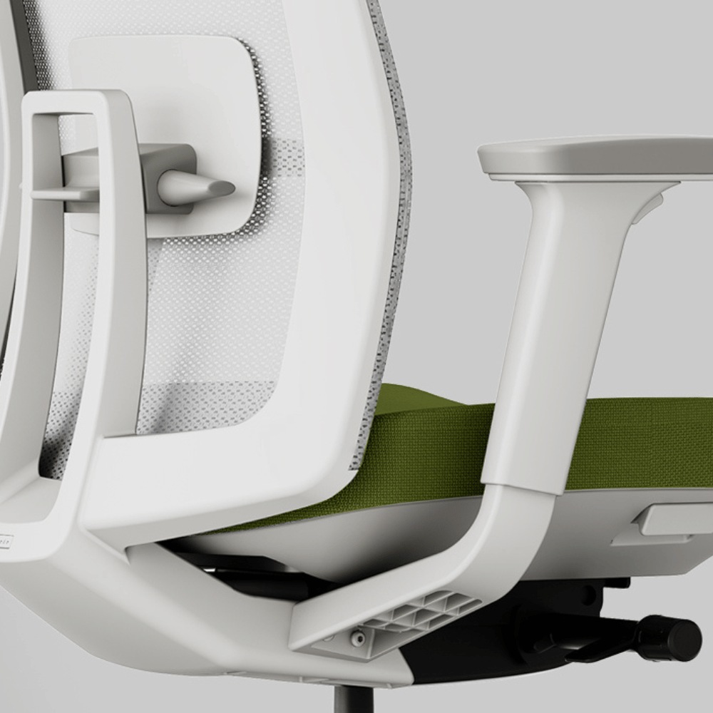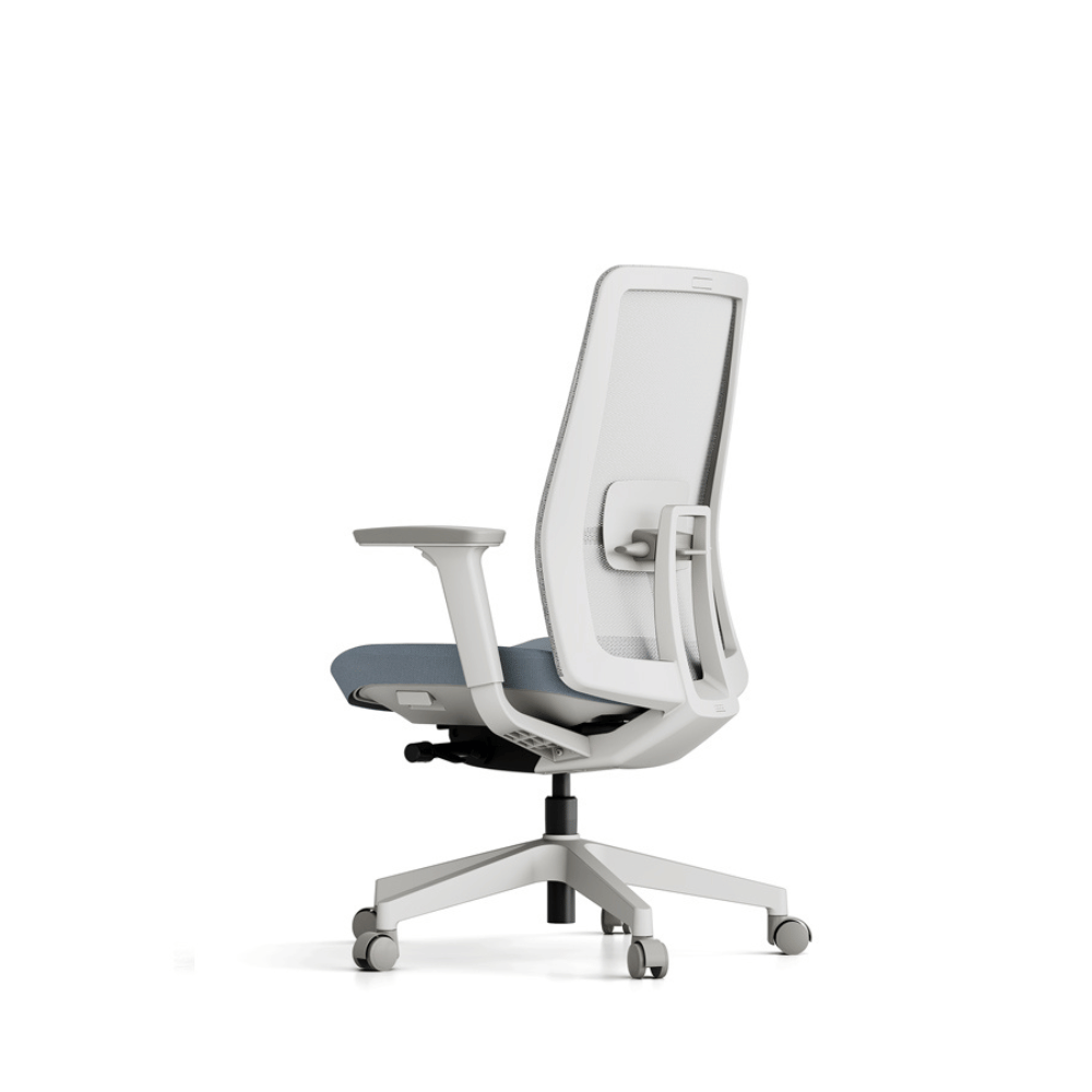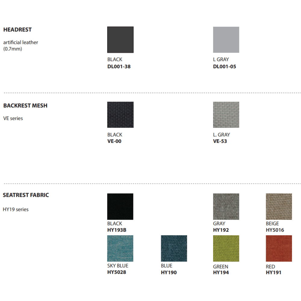 La silla está revestida de tela de malla WINTEX, conocida por su alta resistencia y transpirabilidad. Su estructura está diseñada para garantizar máxima estabilidad y seguridad, mientras que las ruedas de PU aseguran un desplazamiento suave. El mecanismo de basculación sincronizada permite un ajuste preciso de la inclinación.