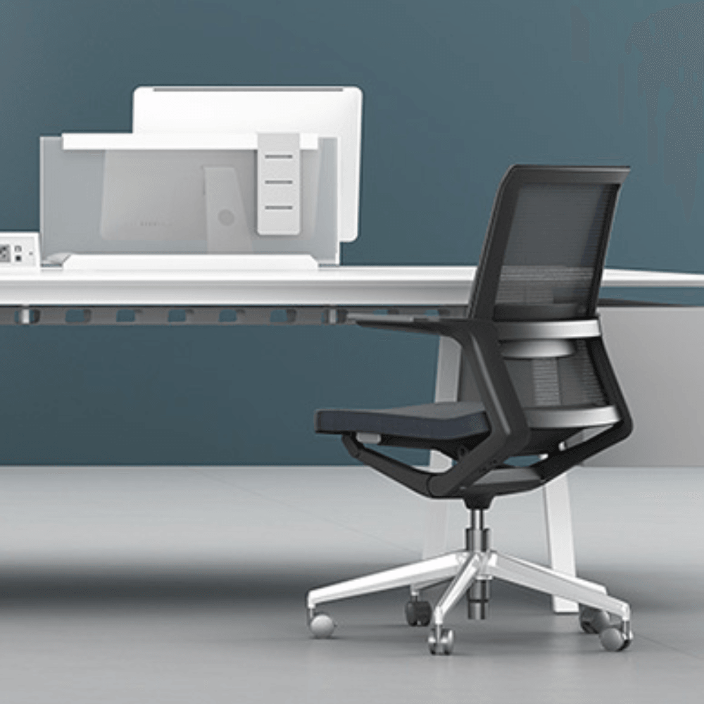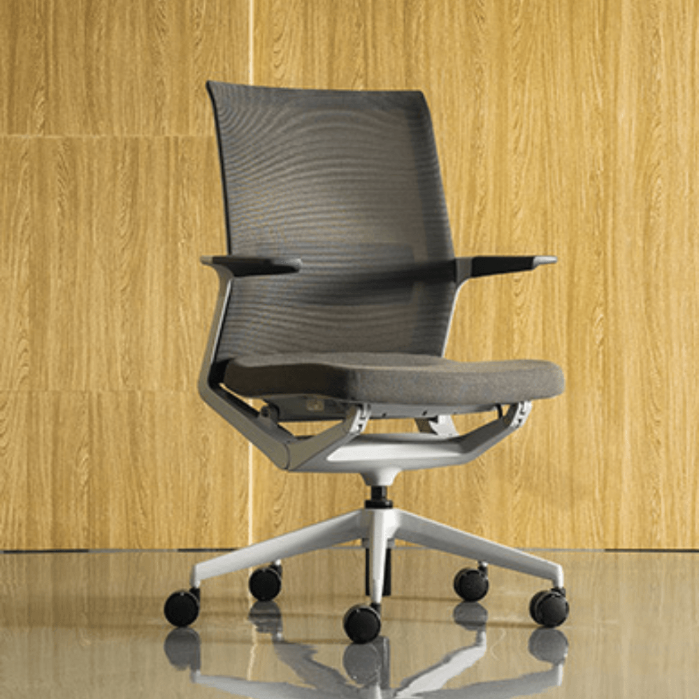 La silla cuenta con una estructura de nylon y un respaldo de malla que ofrece una ventilación óptima. Su asiento está hecho de espuma moldeada, cubierto con una tela de calidad. La base de aluminio garantiza robustez y estabilidad mejoradas.