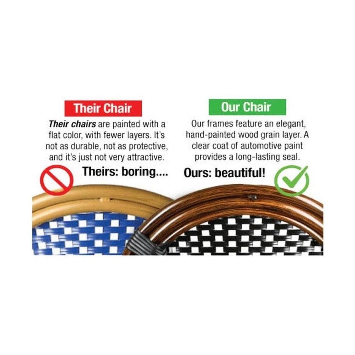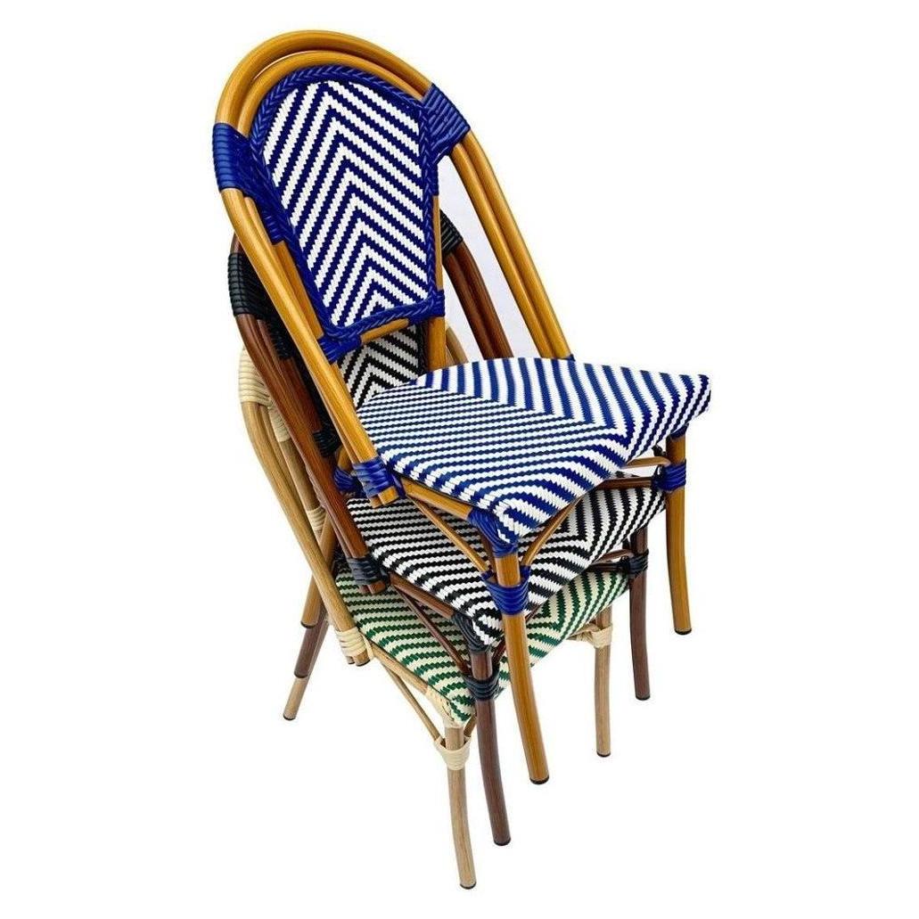 Esta silla de bistró combina estilo y durabilidad, ideal para espacios exteriores,