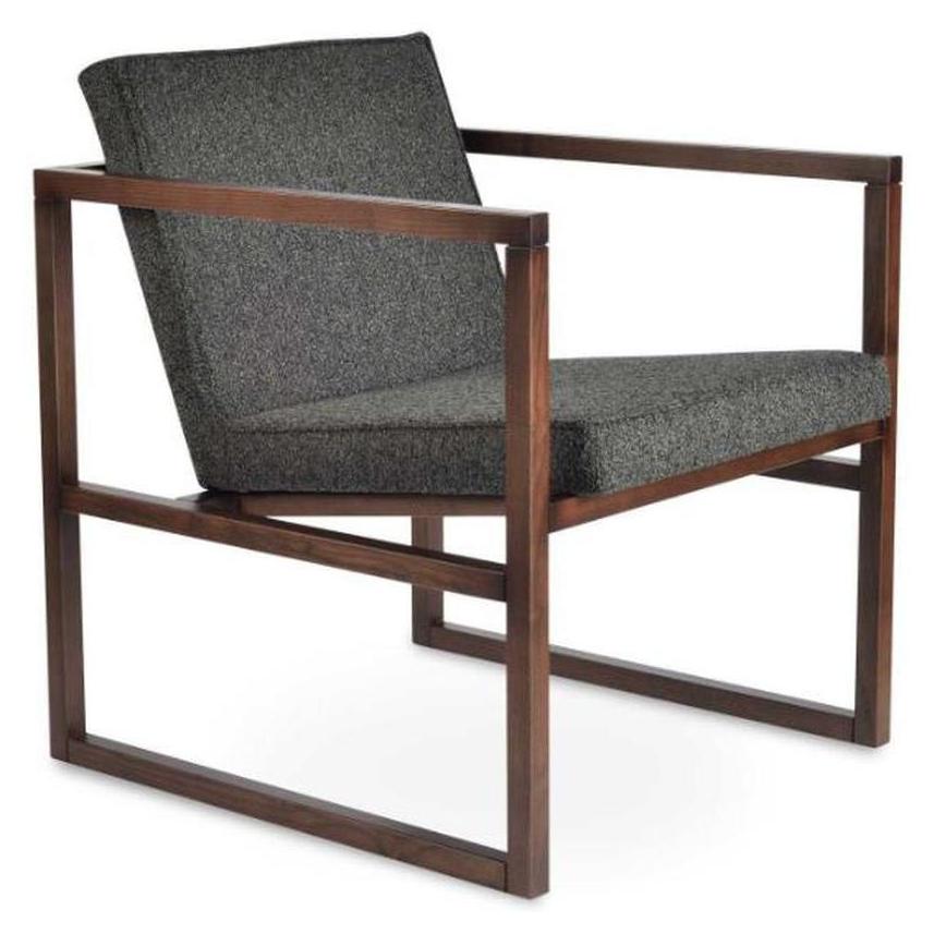 • Estructura / materiales: Su base de madera se combina con cojines de asiento y respaldo tapizados en tela, lana y PPM,
