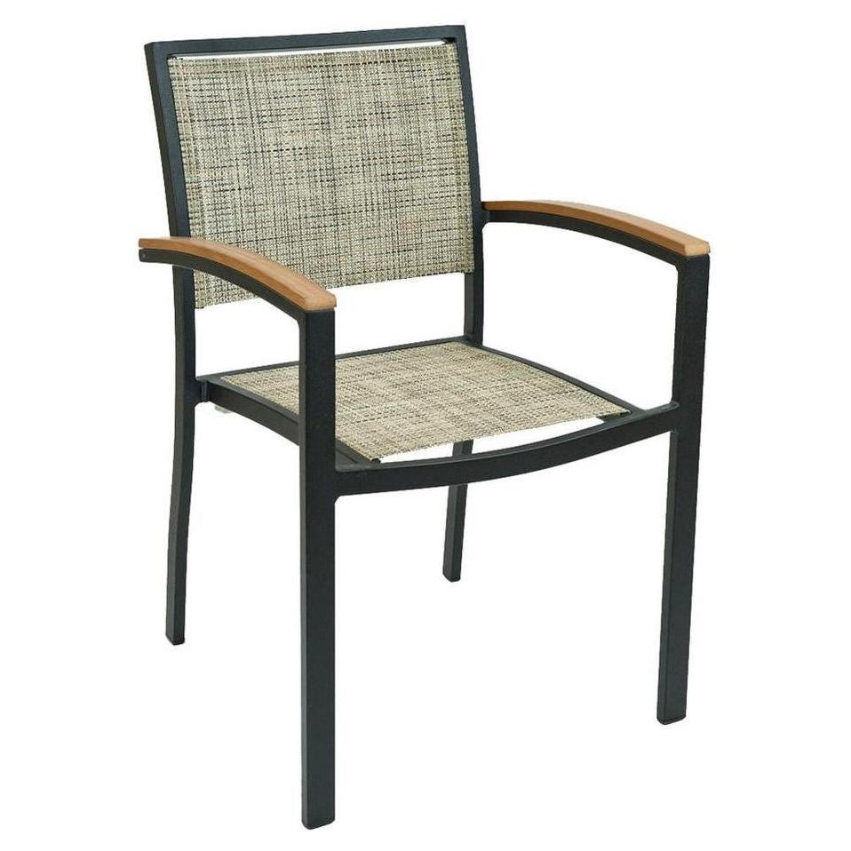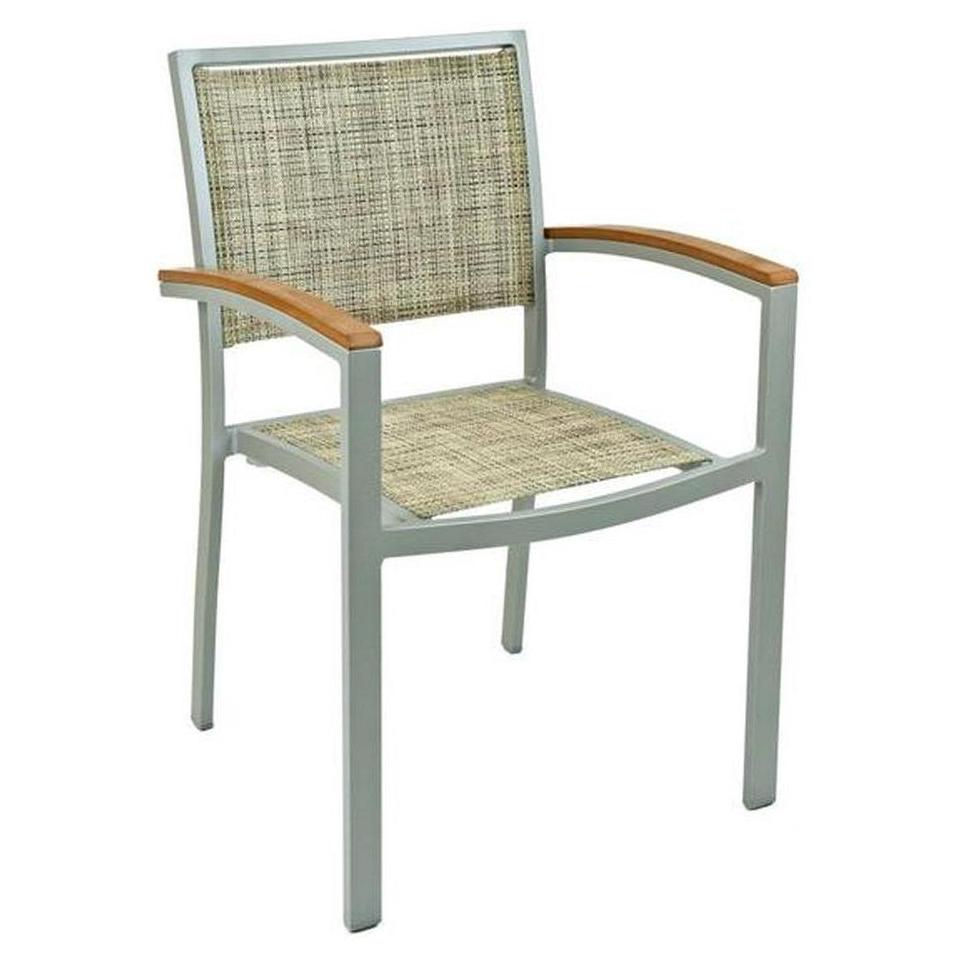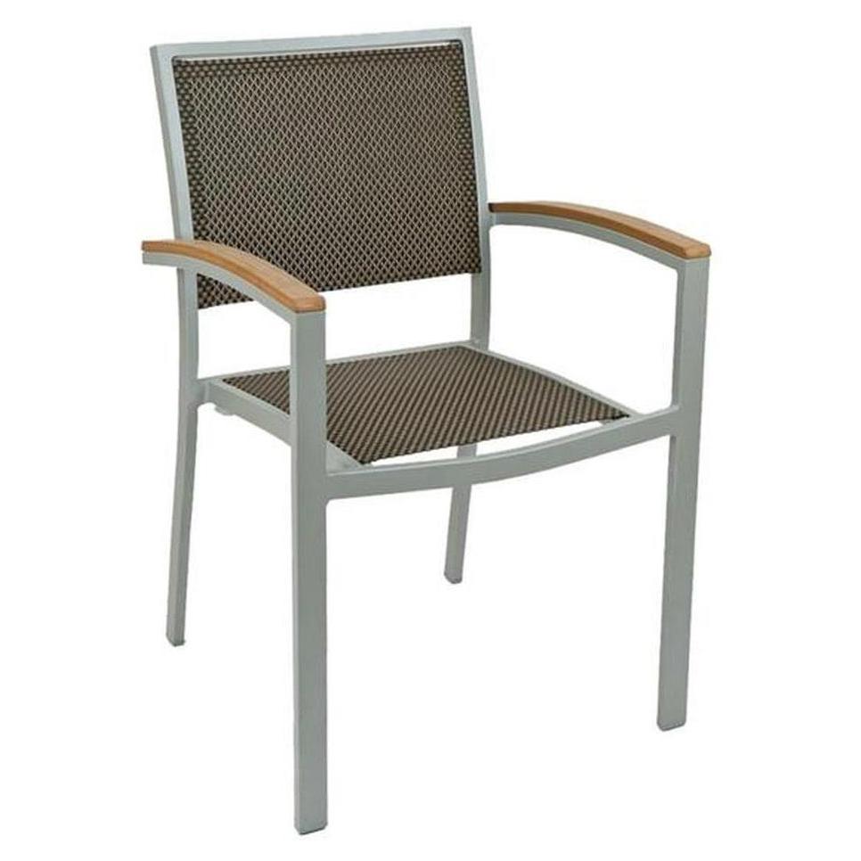 Este sillón está diseñado para uso en exteriores, ideal para espacios de restauración que buscan una estética moderna,