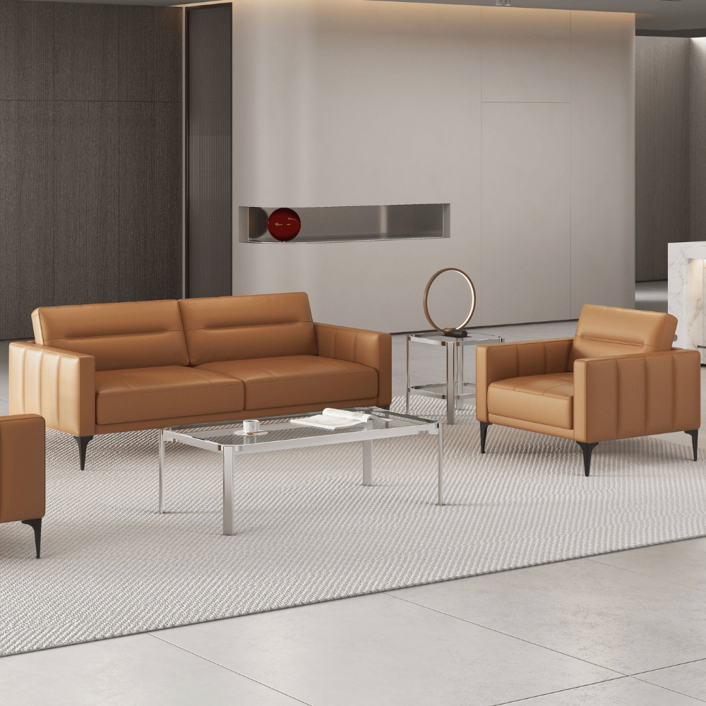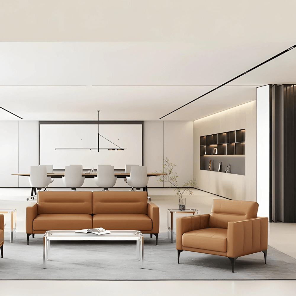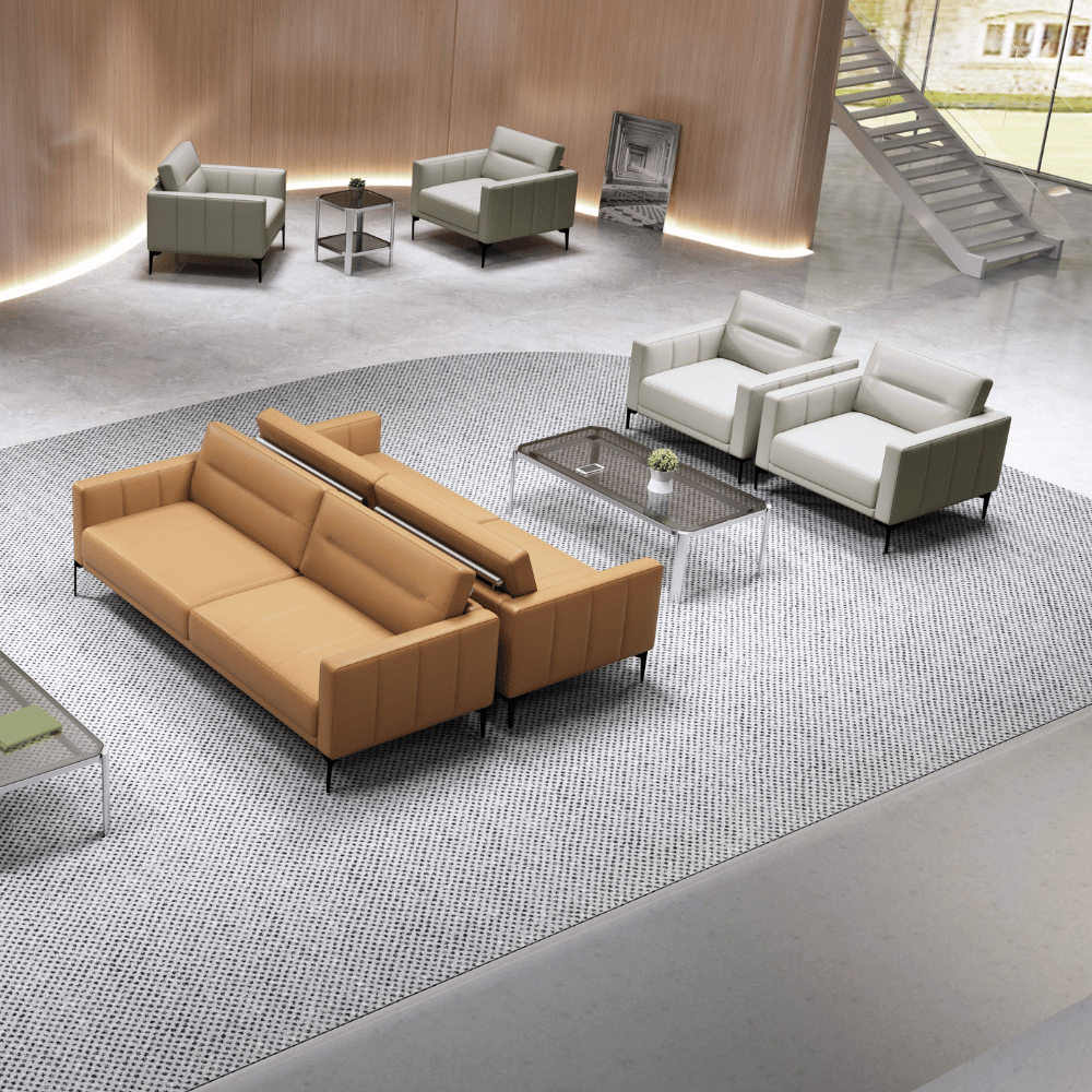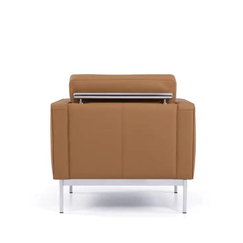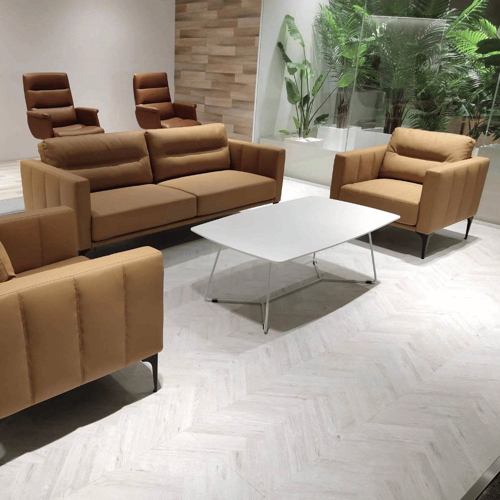 El sillón lounge Kuwait de cuero está diseñado para brindar comodidad y elegancia en entornos profesionales.