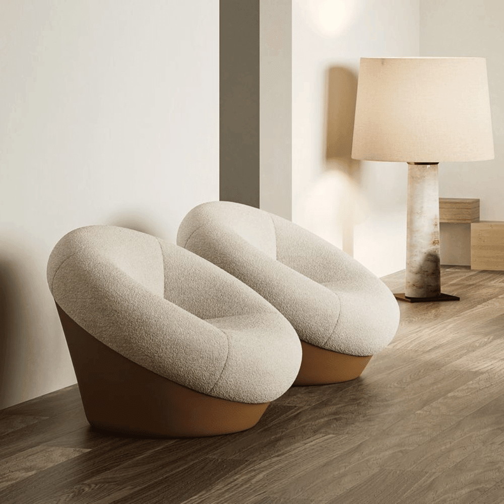 El sillón está fabricado con madera de pino de Nueva Zelanda y contrachapado curvado, ofreciendo robustez manteniendo una estética natural. Su acolchado de espuma de alta elasticidad con una densidad de 45 garantiza un confort duradero. La combinación de tela y cuero refuerza su elegancia y proporciona una sensación agradable al tacto.