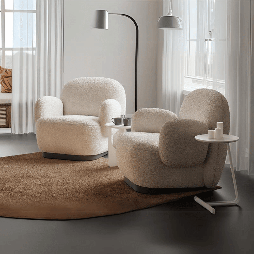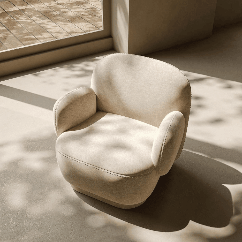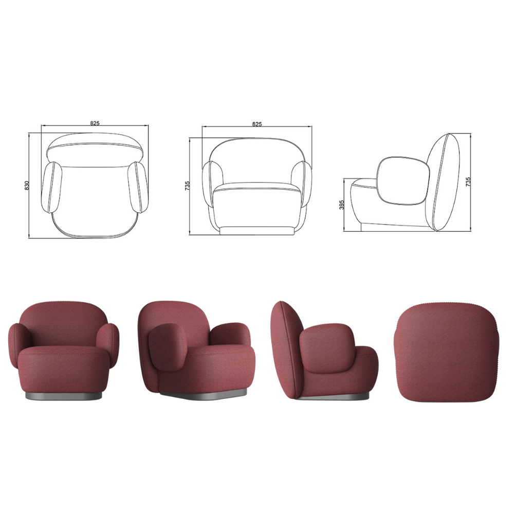 El sillón tiene un acabado cuidado y una textura agradable al tacto. Su diseño fluido y armonioso asegura una durabilidad a lo largo del tiempo, aportando un toque de modernidad a su espacio. Los materiales utilizados garantizan una experiencia de uso agradable y duradera.