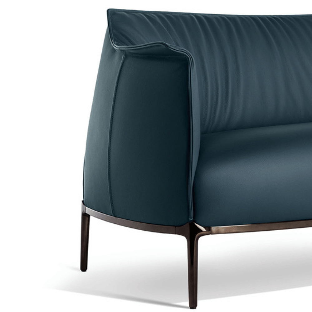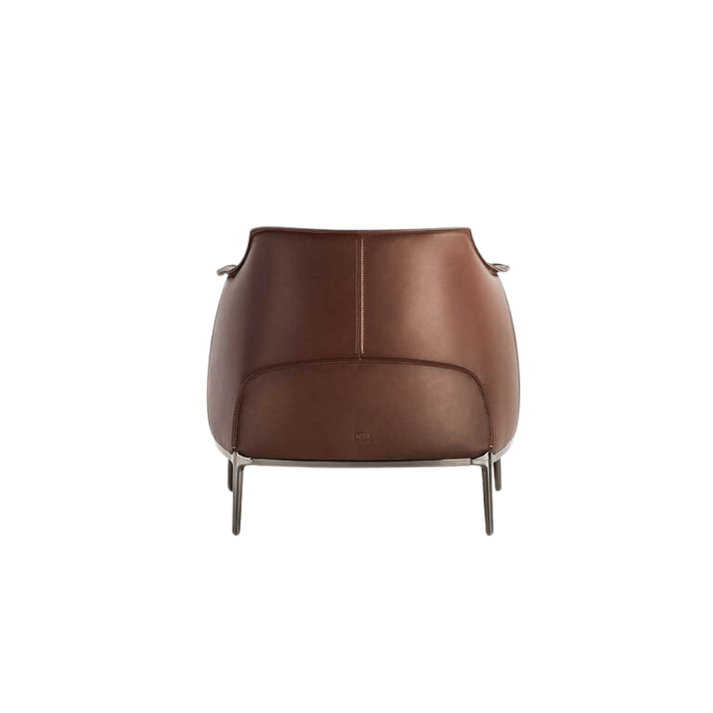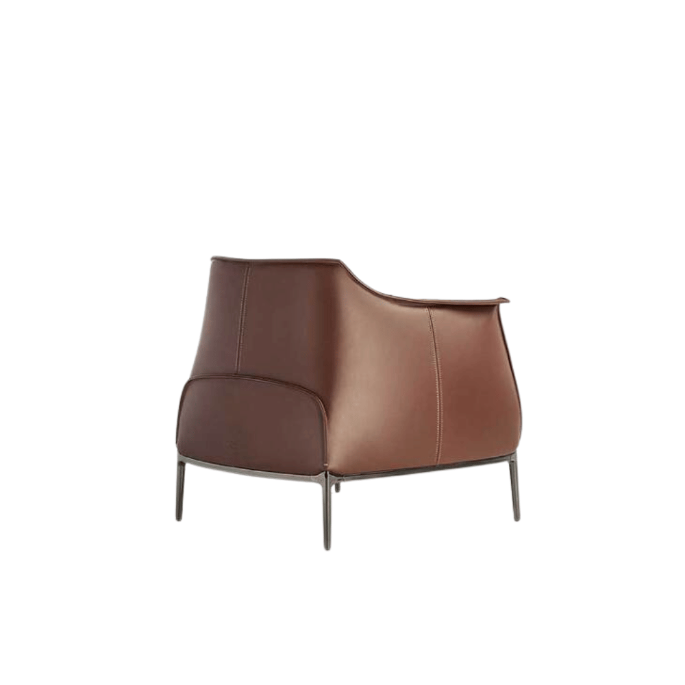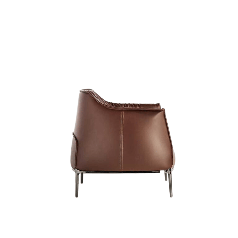 Su estructura interna de acero garantiza una estabilidad y durabilidad excepcionales. El relleno de espuma de poliuretano ofrece una comodidad óptima, manteniendo su forma después de un uso prolongado. El asiento está cubierto con cuero de calidad, combinado con patas de acero pintado, aportando un toque contemporáneo.