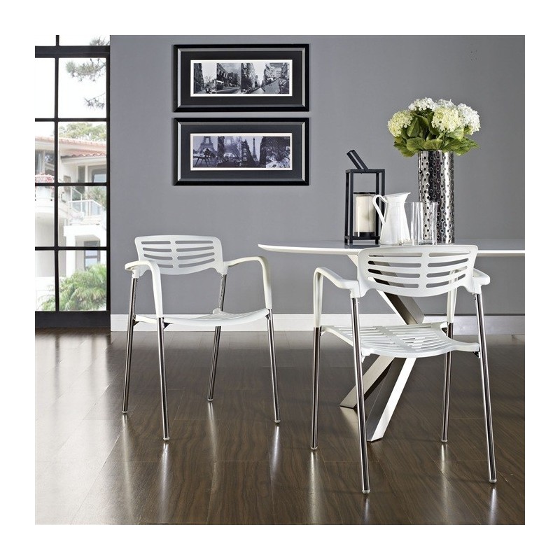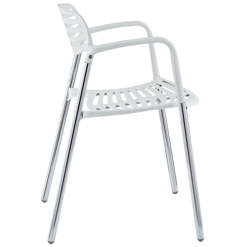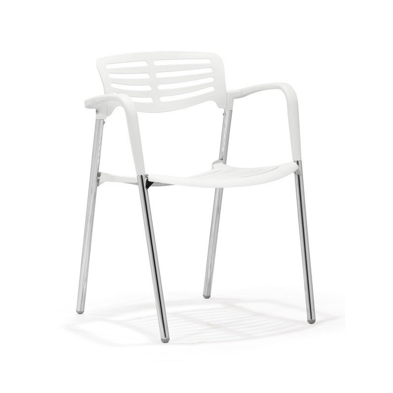 Sillón Simested con carcasa de polipropileno blanco y estructura cromada