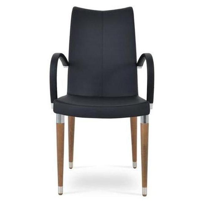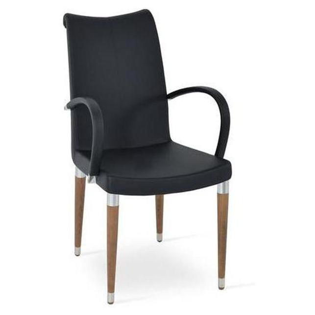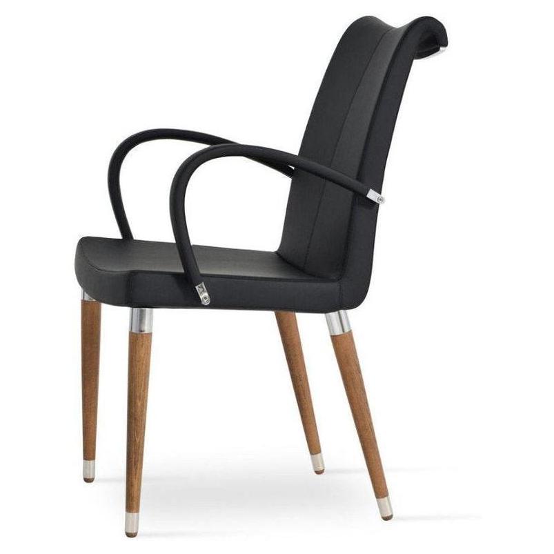 • Estructura / materiales: Fabricada con asiento y respaldo acolchados sobre patas de madera, con protectores de plástico,