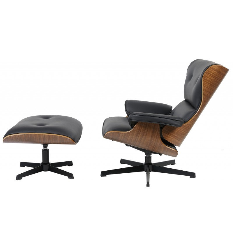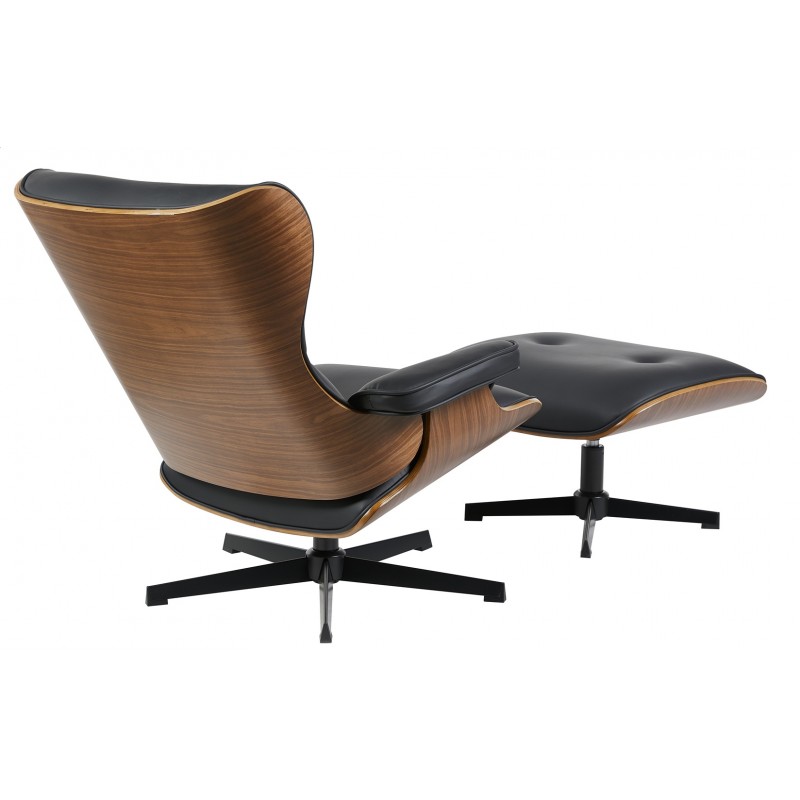 Sillón y reposapiés Hostelbro lounge de cuero sintético (negro)