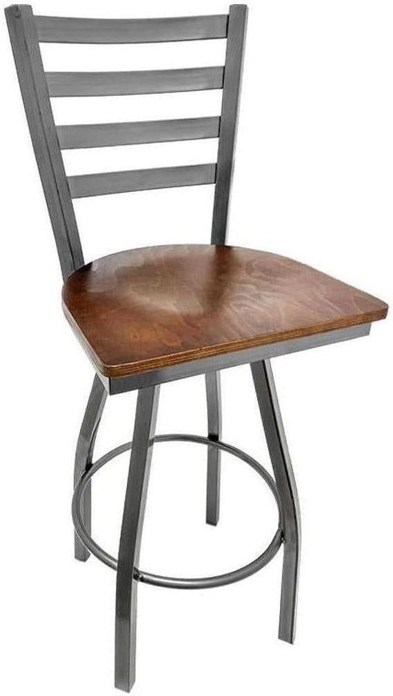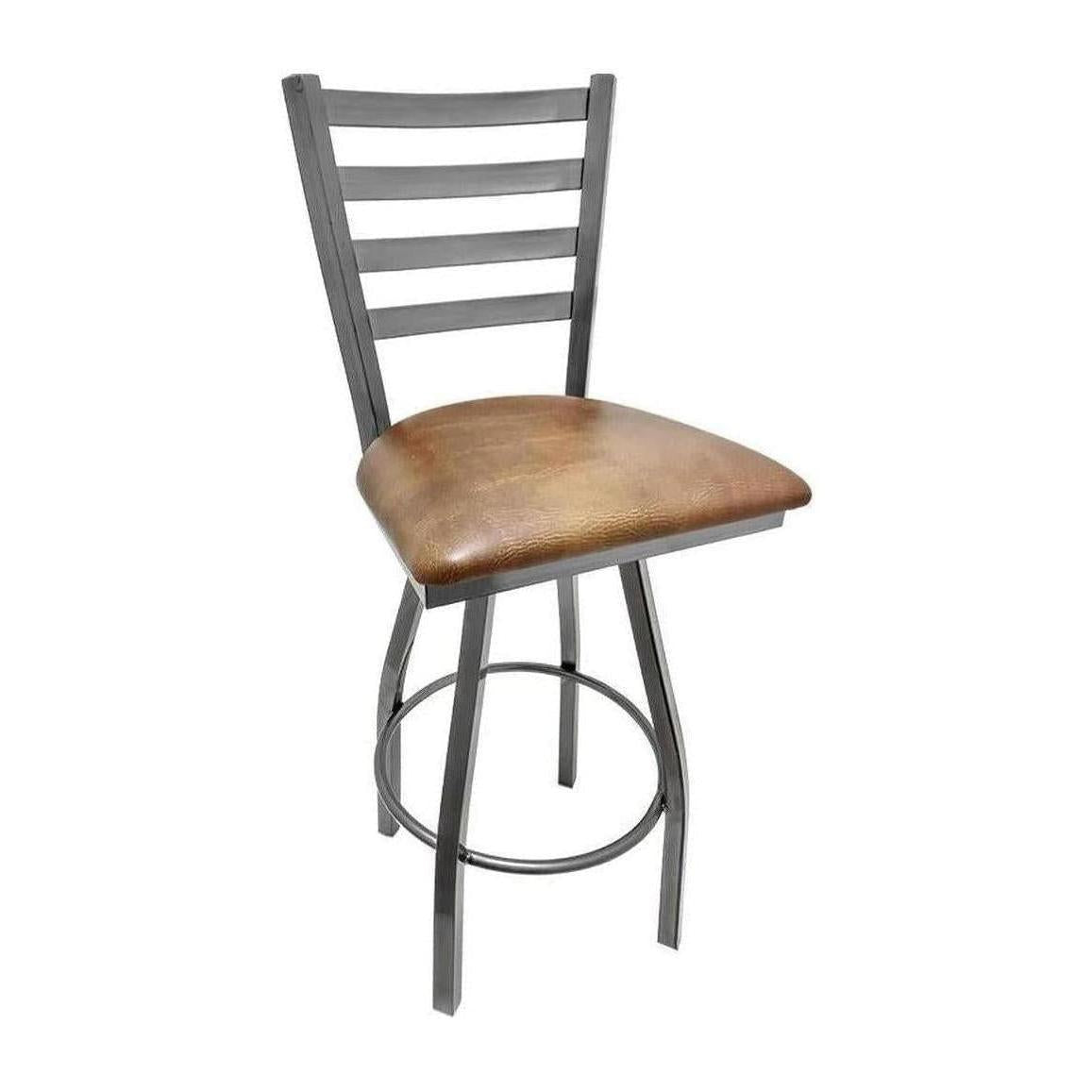 Taburete de altura de mostrador con respaldo tipo escalera y base giratoria acabado transparente.